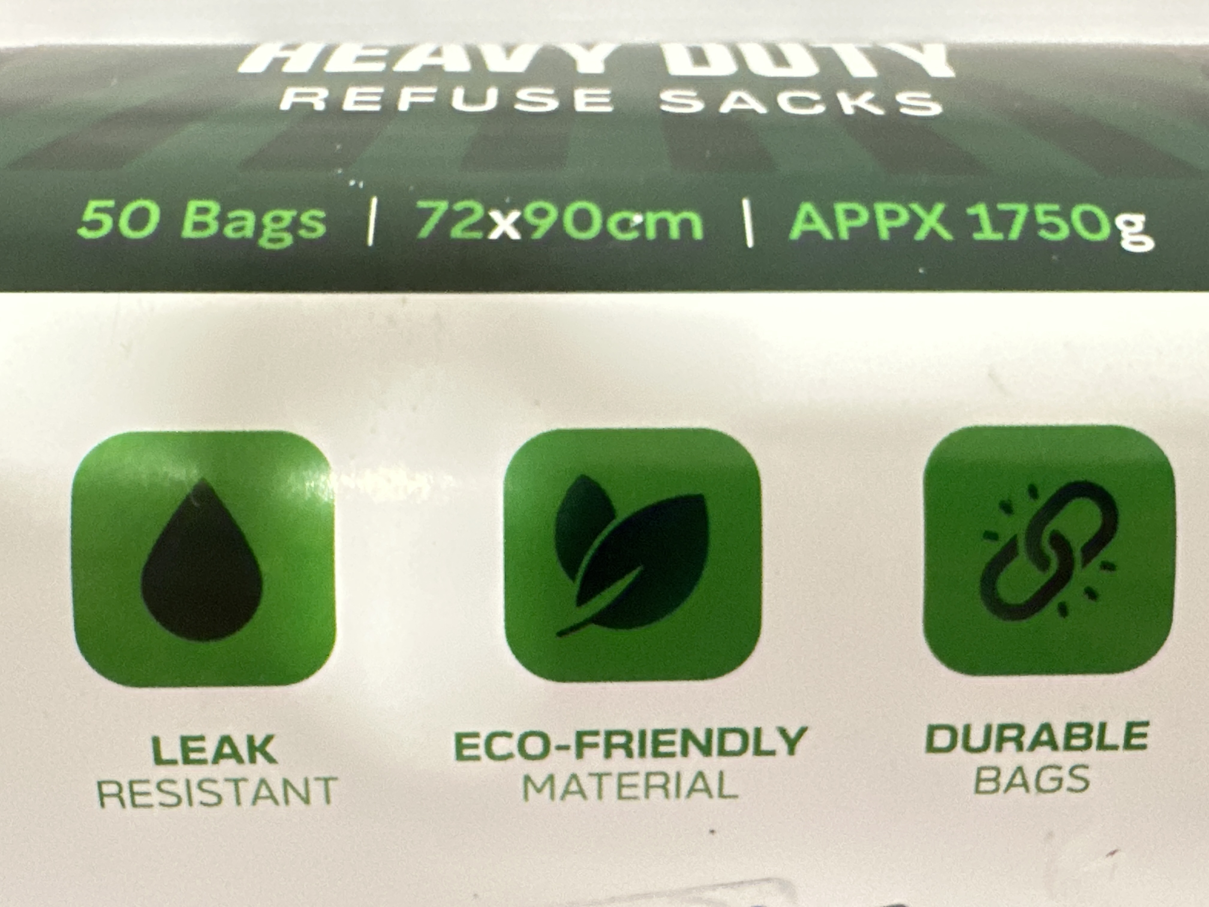 These super heavy duty refuse sacks are designed for demanding waste disposal tasks in both domestic and commercial settings. With a large 100-litre capacity and strong, leak-resistant construction, they are ideal for handling bulky, heavy or wet waste. Manufactured from eco-friendly materials, these durable bags provide reliable performance while supporting more sustainable waste management.