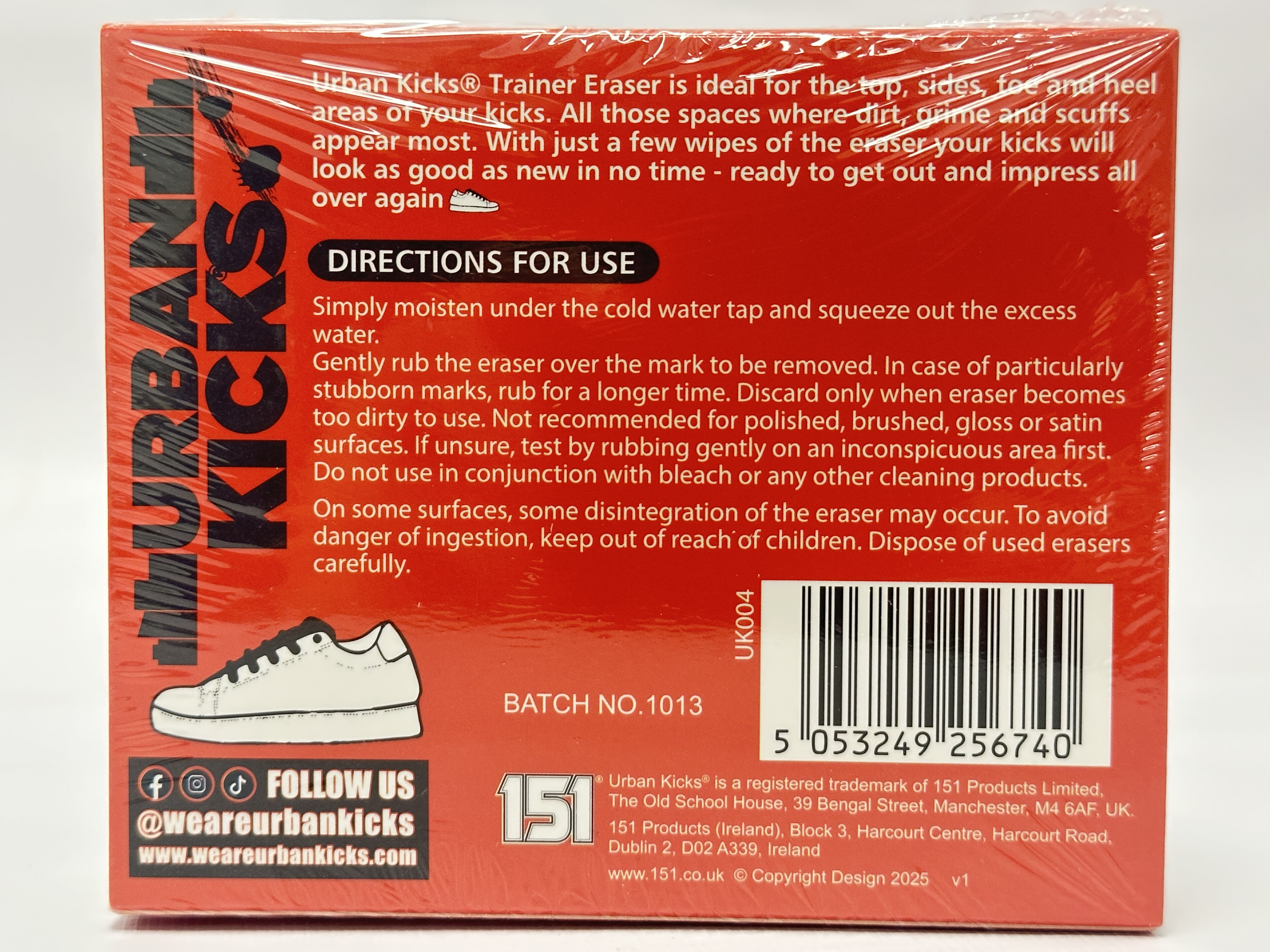 Urban Kicks Trainer Eraser is designed to help remove marks and scuffs from trainers and footwear surfaces using only water. Each eraser sponge works by gently lifting dirt and grime from the surface without the need for additional cleaning chemicals.