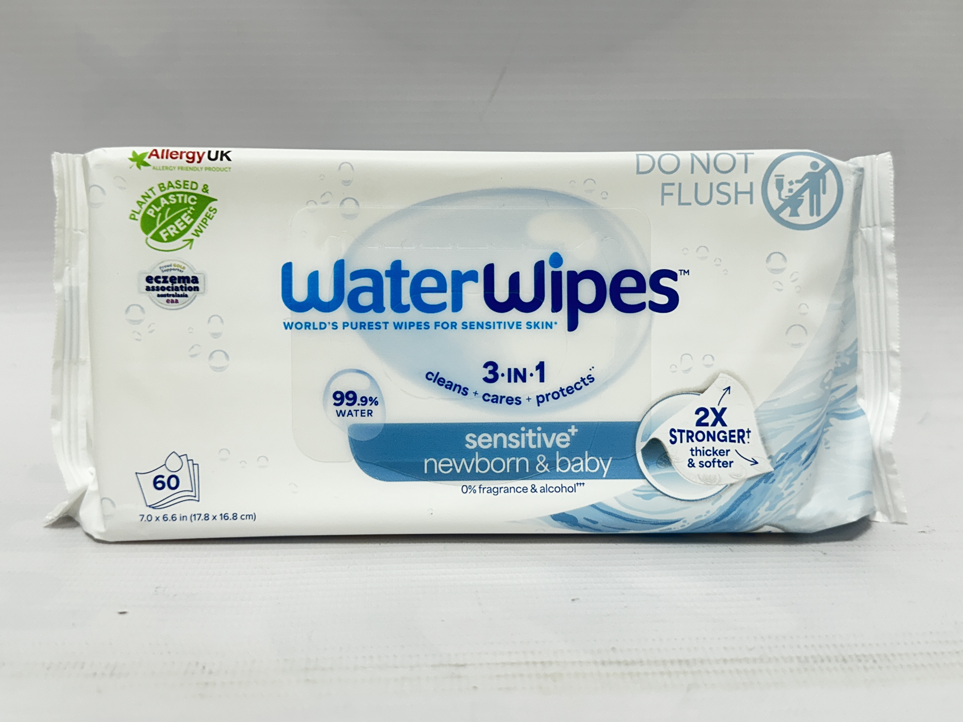 WaterWipes Sensitive Newborn & Baby Wipes are made for delicate skin and supplied in a handy 60 wipe pack. This pack is designed for everyday baby care and is suitable for keeping at home, in changing bags or on the go.