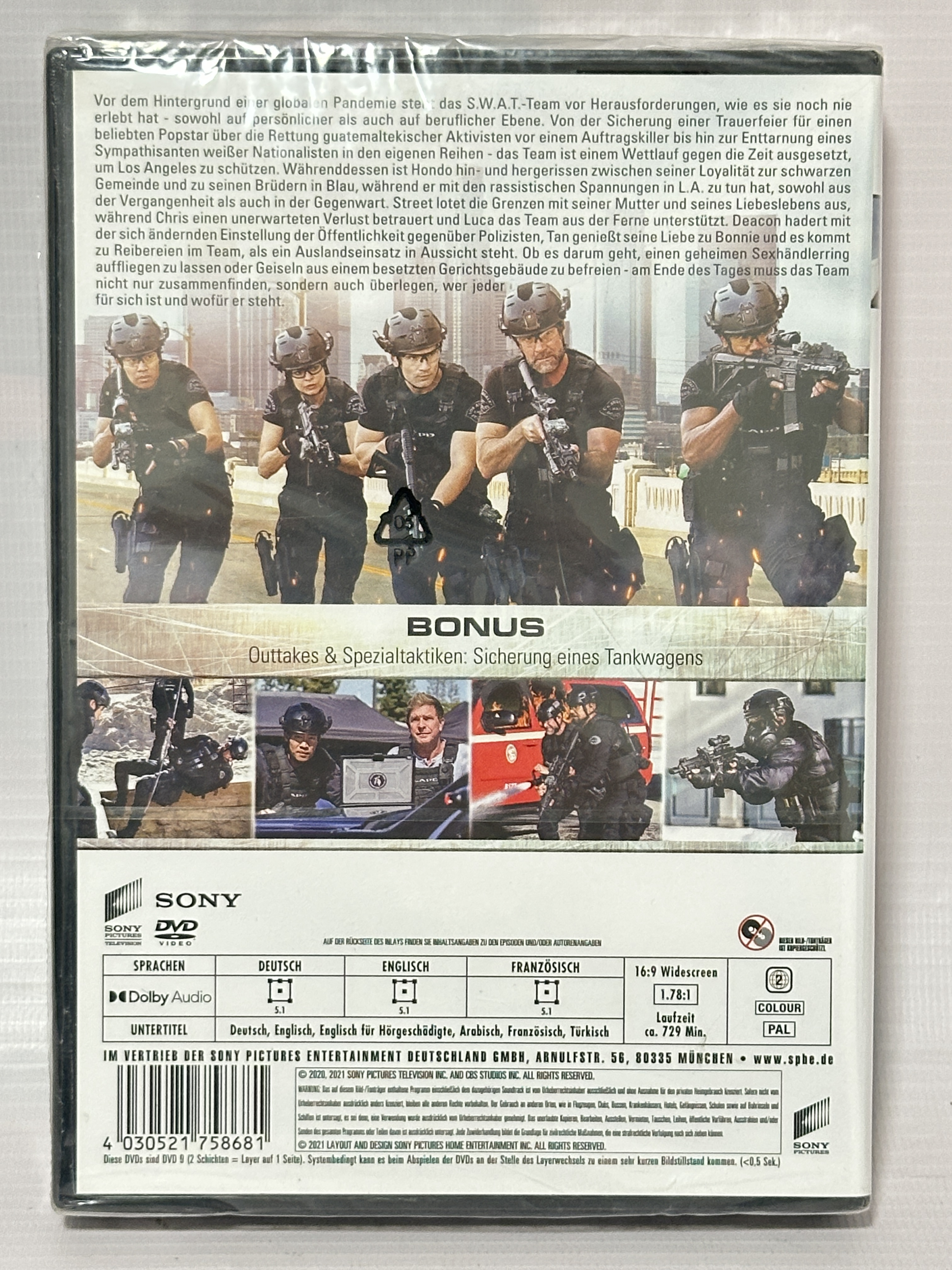 This German release DVD edition includes English, German, and French audio with multiple subtitle options (including English). Enjoy 5.1 Dolby Audio sound and bonus content, including outtakes and tactical special features.