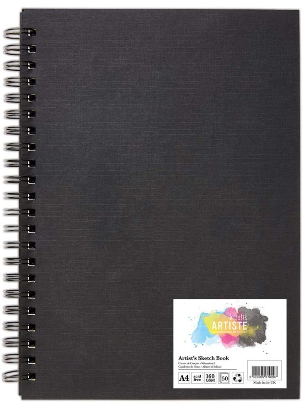 The Docrafts Artiste A4 Hardback Spiral Sketchbook is perfect for artists, designers, and hobbyists looking for a high-quality surface for sketching, drawing, and creative work. With its sturdy hardback cover and durable spiral binding, this portrait-format sketchbook is designed to keep your artwork protected while allowing for easy page turning and flat-lay working.