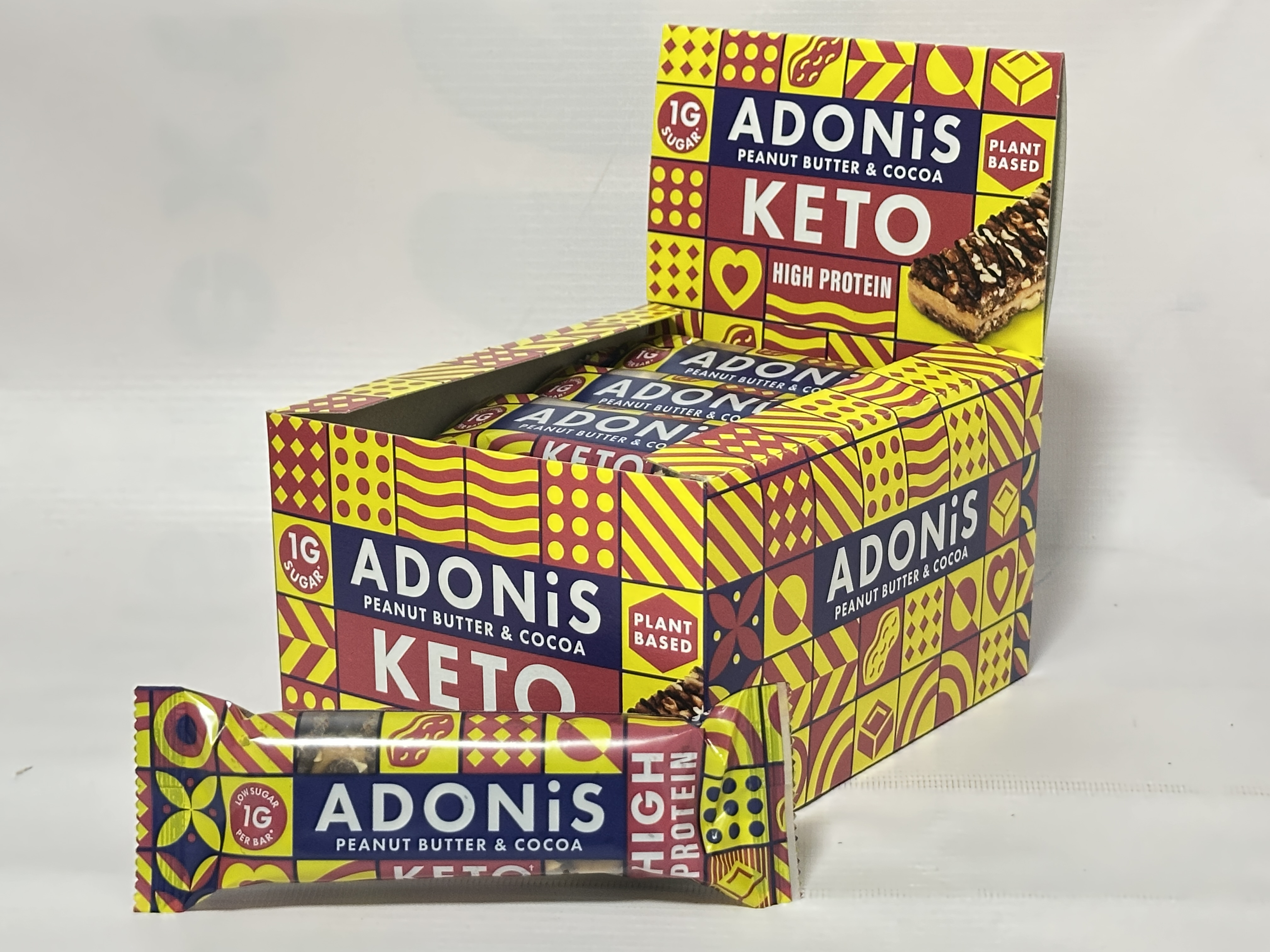 Adonis Peanut Butter & Cocoa Keto Bars – 32×45 g | Vegan • Low‑Sugar • High‑Protein