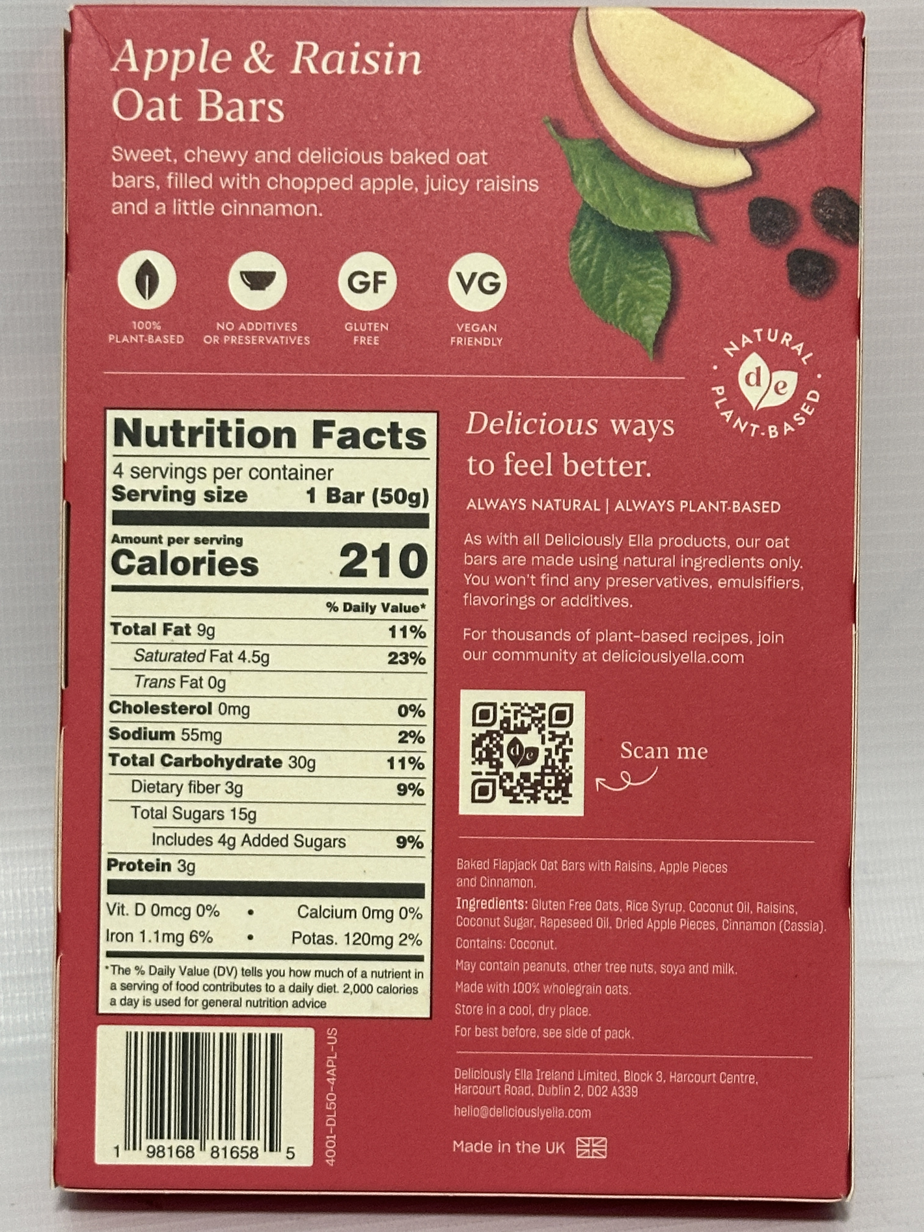 Deliciously Ella Apple & Raisin Oat Bars – Vegan Gluten Free Snacks – 16 x 50g