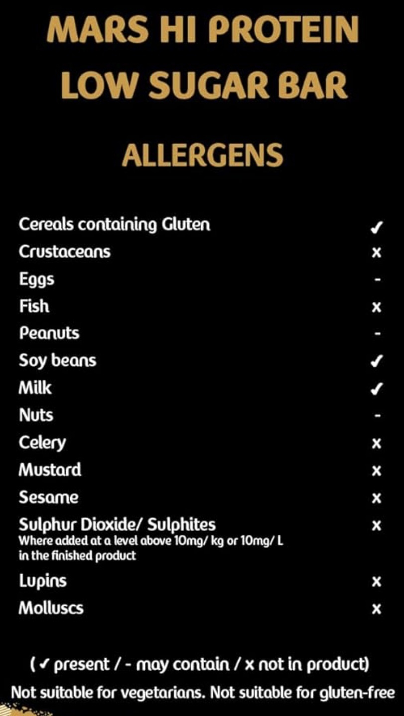 • Mars HiProtein Low Sugar Milk Chocolate protein bars