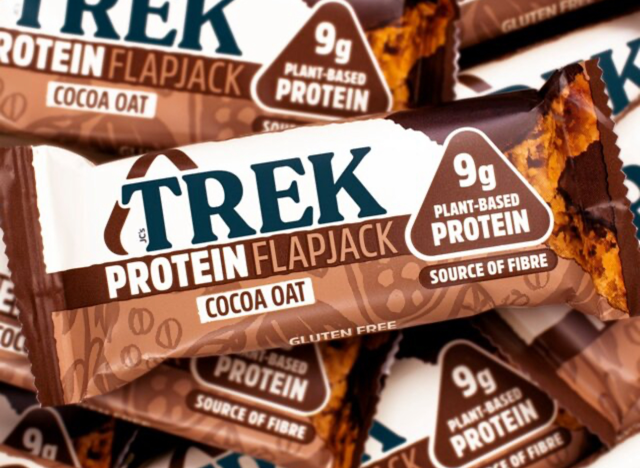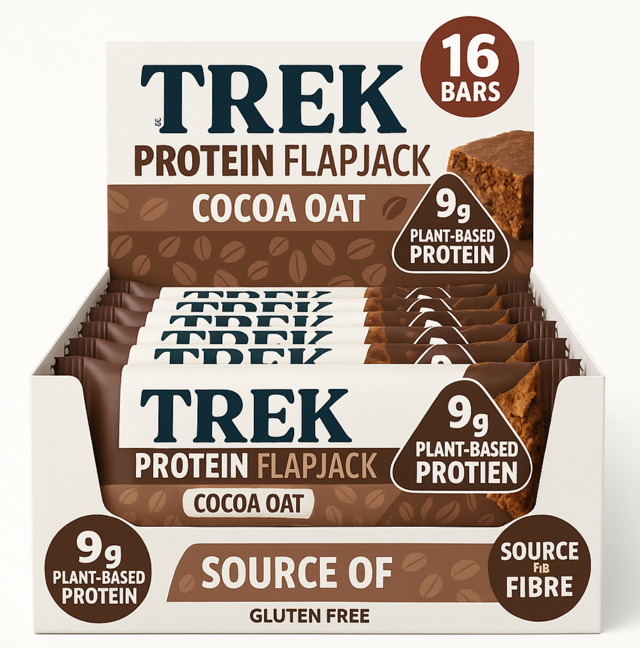 Trek Protein Flapjack Bars Cocoa Oat – 16 x 50g | Vegan, Plant-Based, Gluten Free, 9g Protein Per Bar