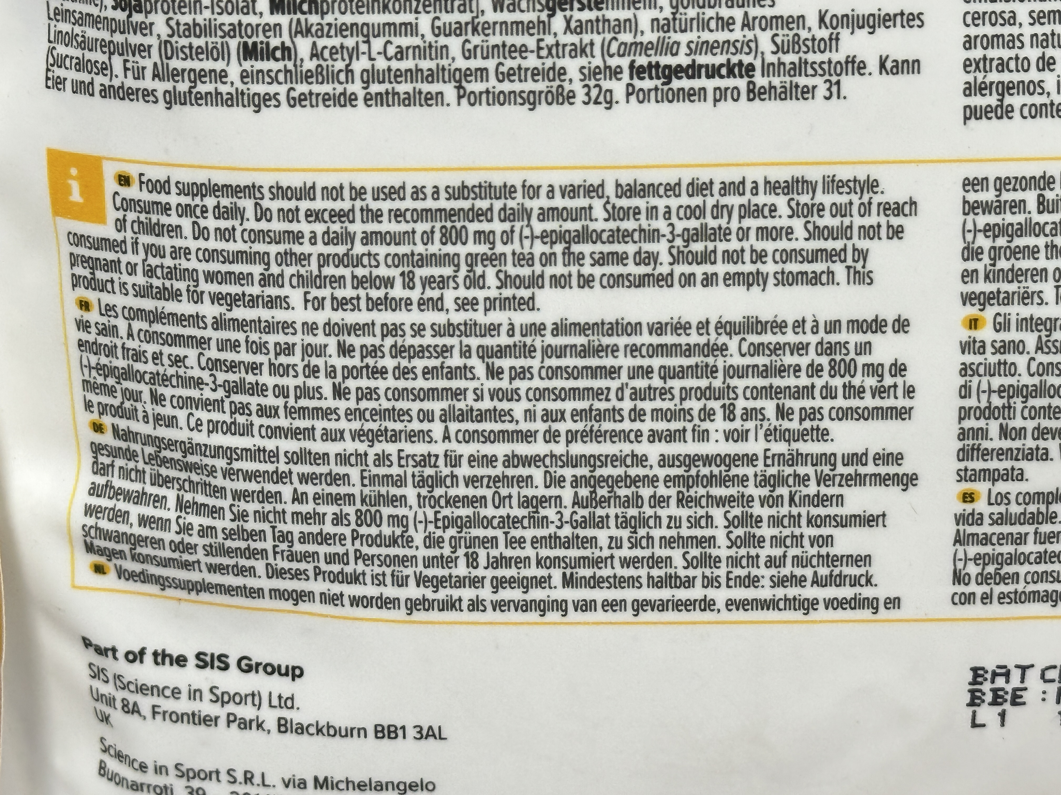 Contains added acetyl-L-carnitine, green tea extract and CLA
