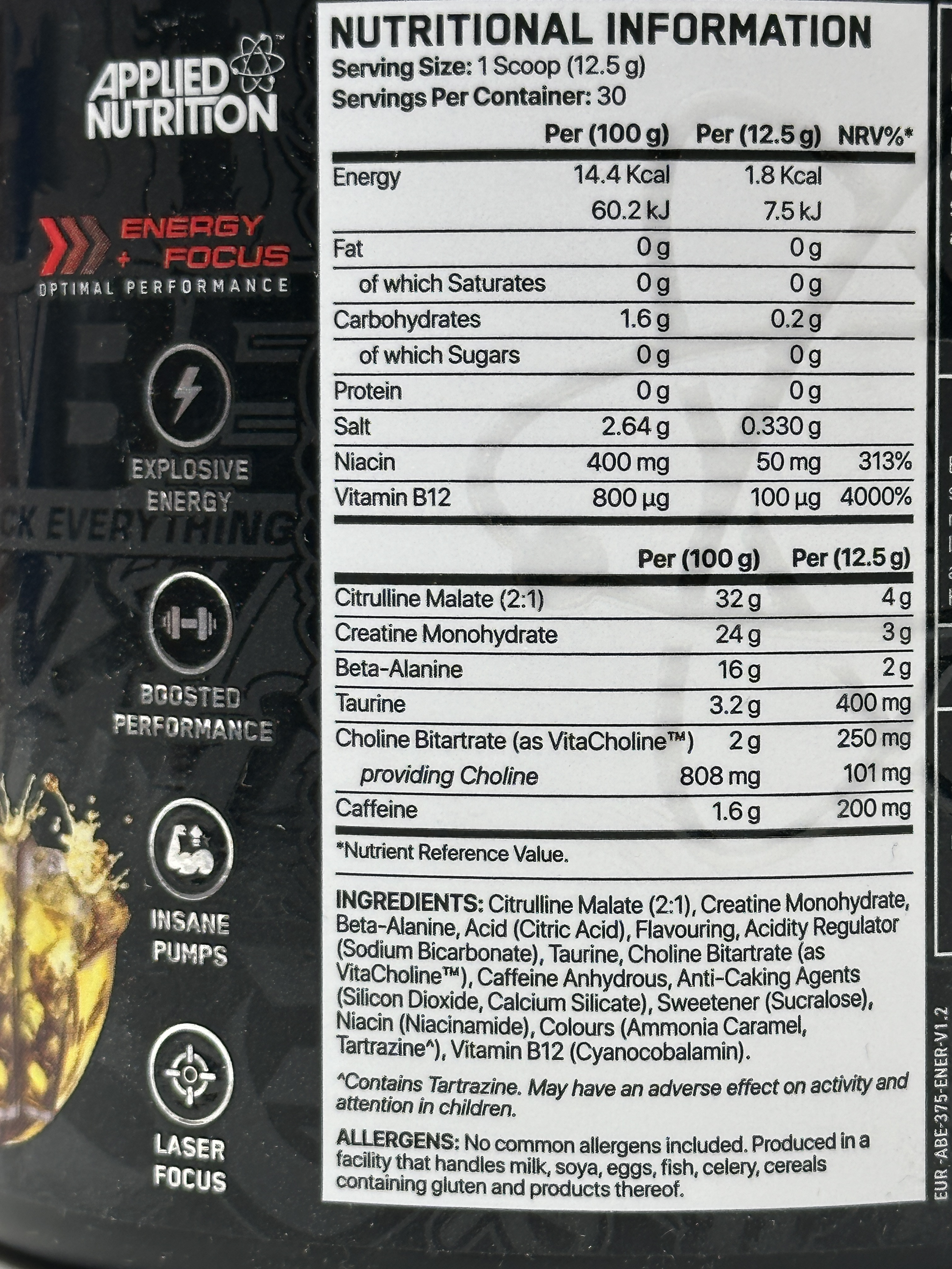Applied Nutrition ABE Pre-Workout Energy Flavour – 375g – 30 Servings