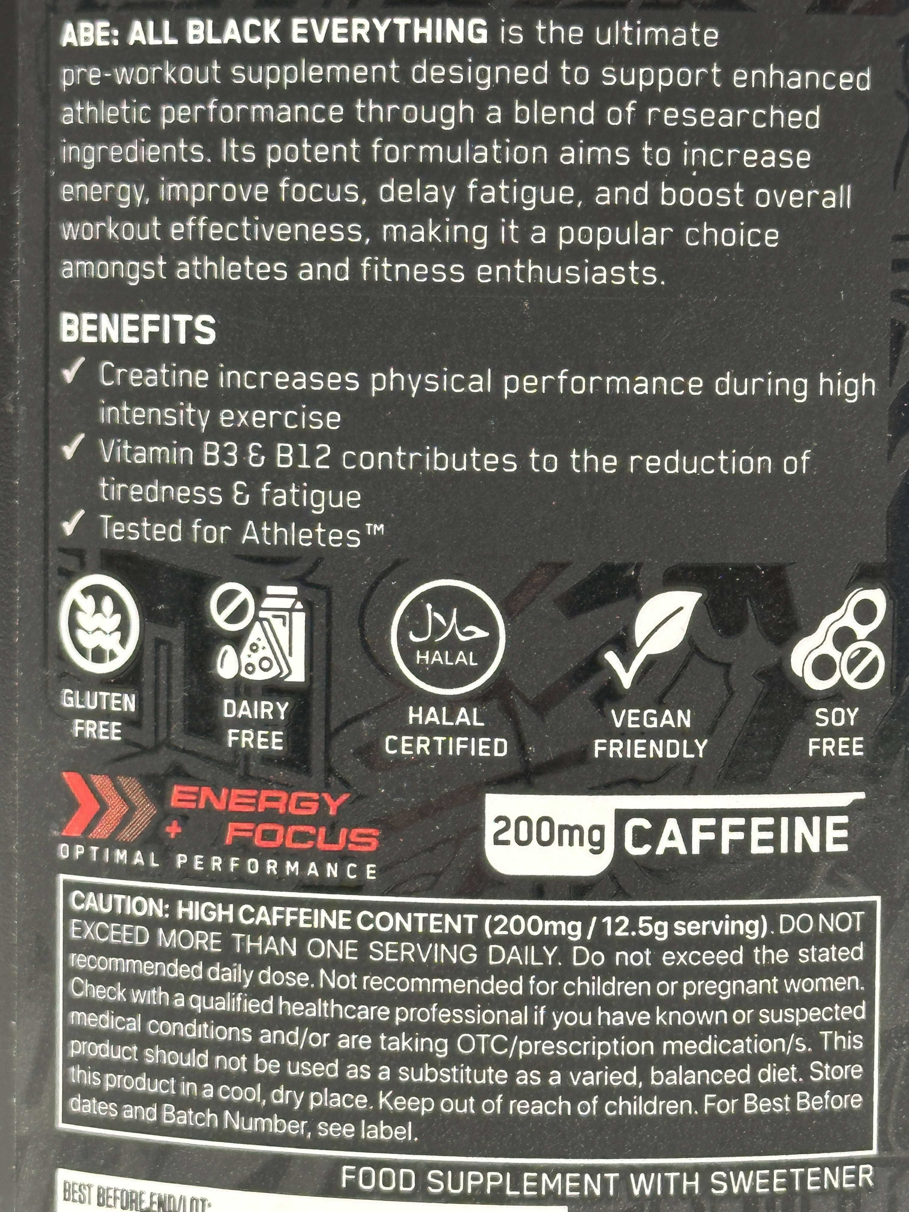 - Contains 200mg caffeine, Taurine, and vitamins B3 & B12 for energy and alertness