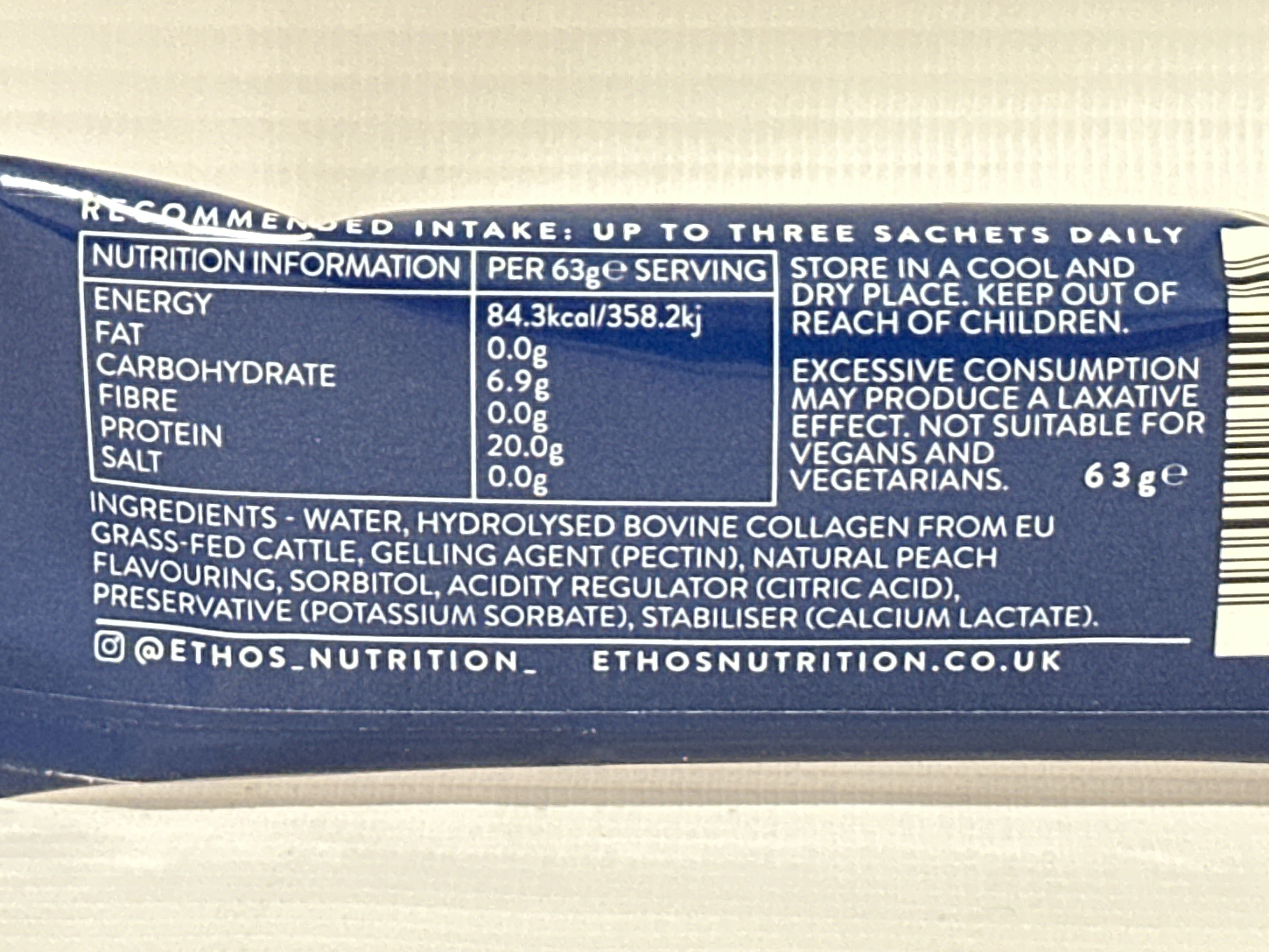 Each serving provides 20g hydrolysed bovine collagen