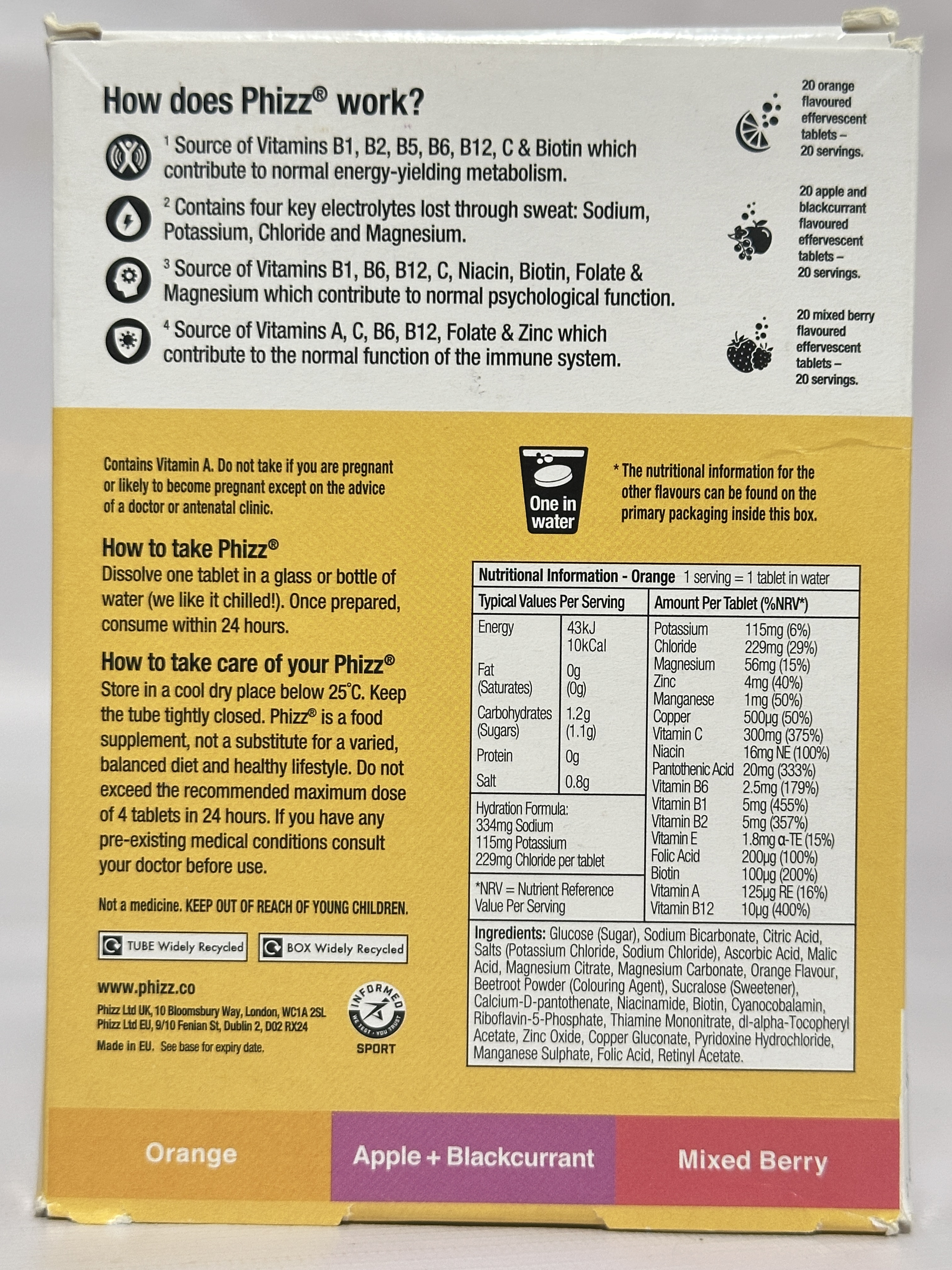 • Variety Pack (3 Flavours) – Orange, Apple & Blackcurrant, and Mixed Berry (20 tablets each).