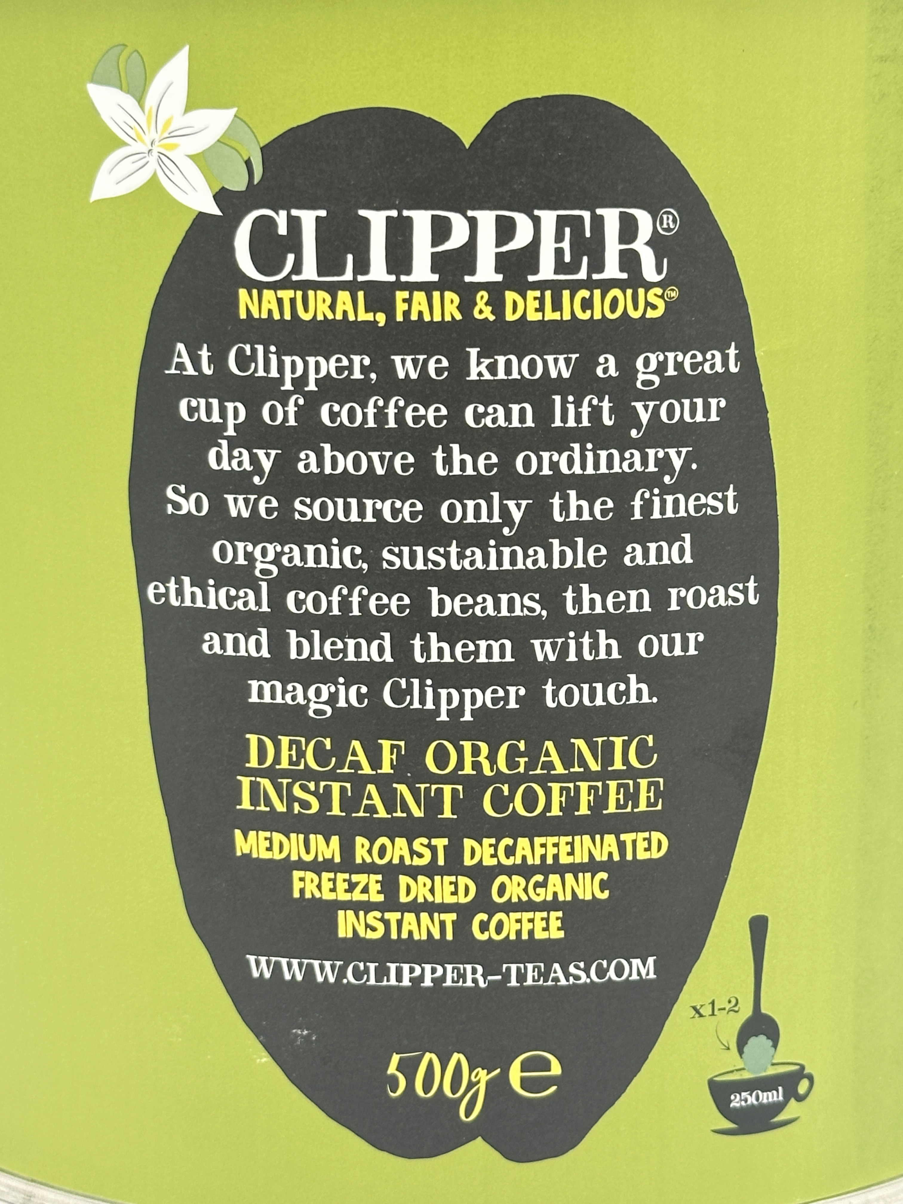 Clipper Organic Decaf Instant Coffee | Fairtrade Medium Roast Arabica | 500g Tin