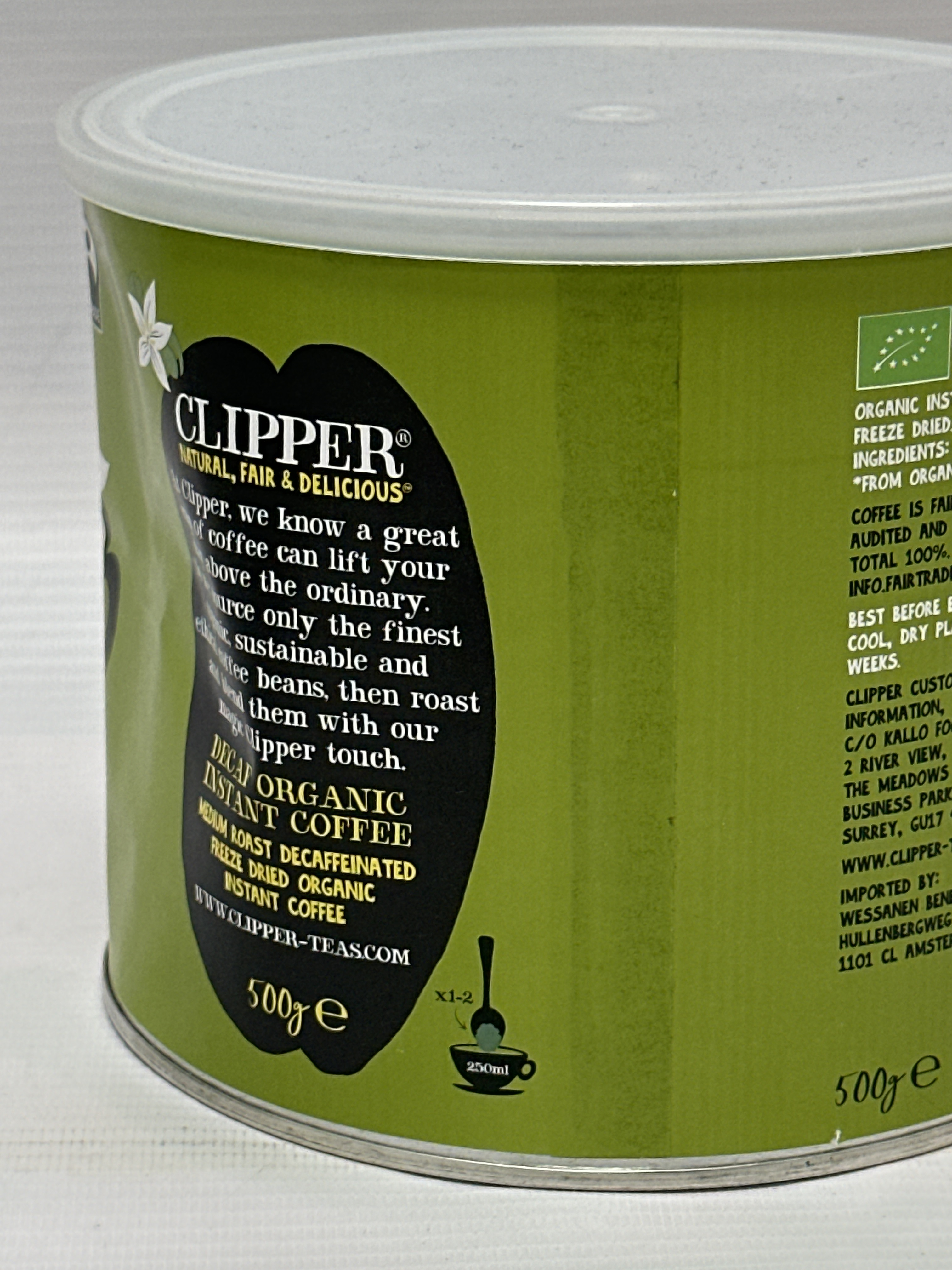 Clipper Organic Decaf Instant Coffee | Fairtrade Medium Roast Arabica | 500g Tin