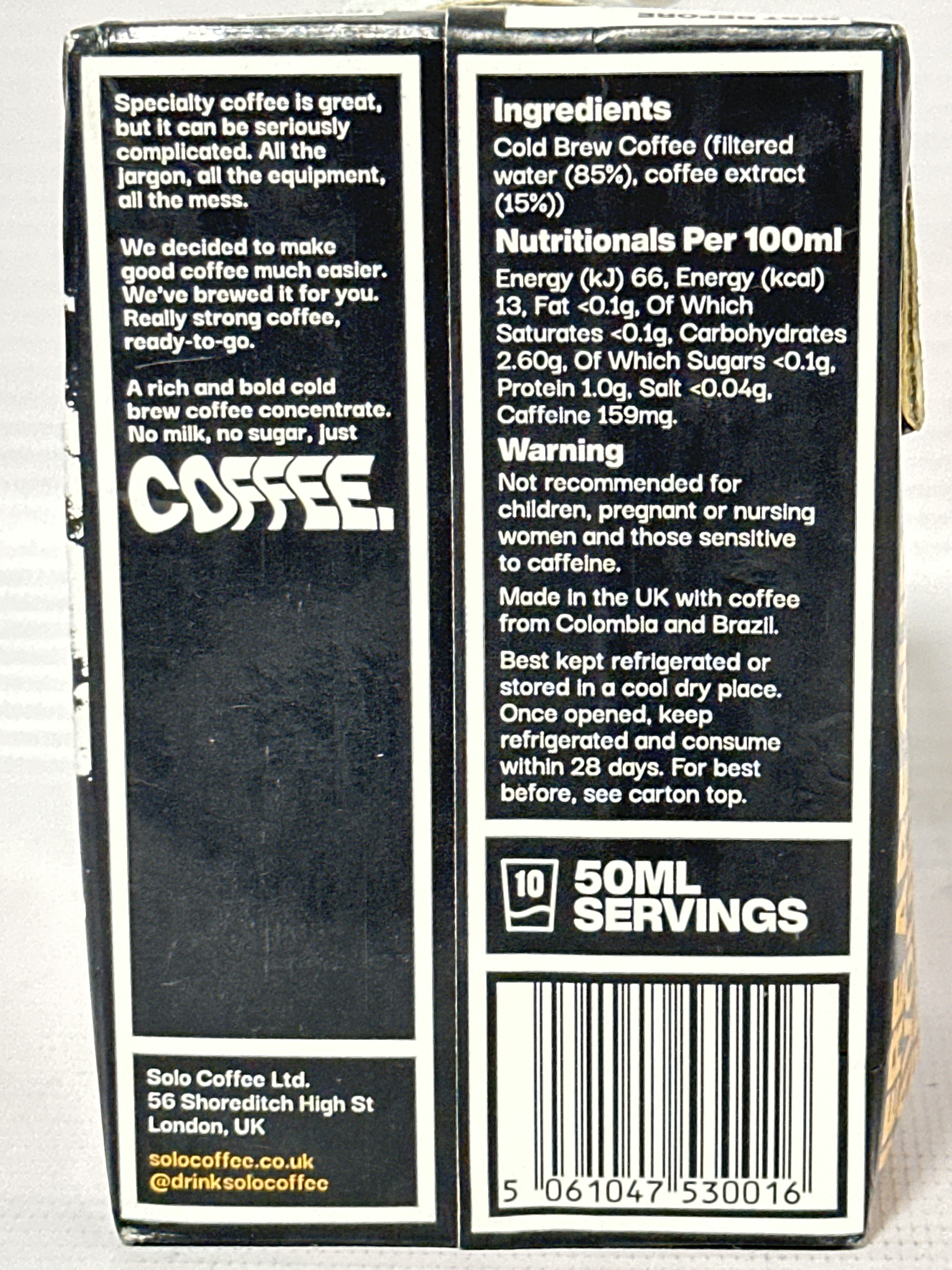 Solo Ready-To-Go Espresso | Makes 10 Coffees | Perfect for Iced Coffee | Instant Barista Grade Coffee | Natural | Black and Unsweetened | 50cl |