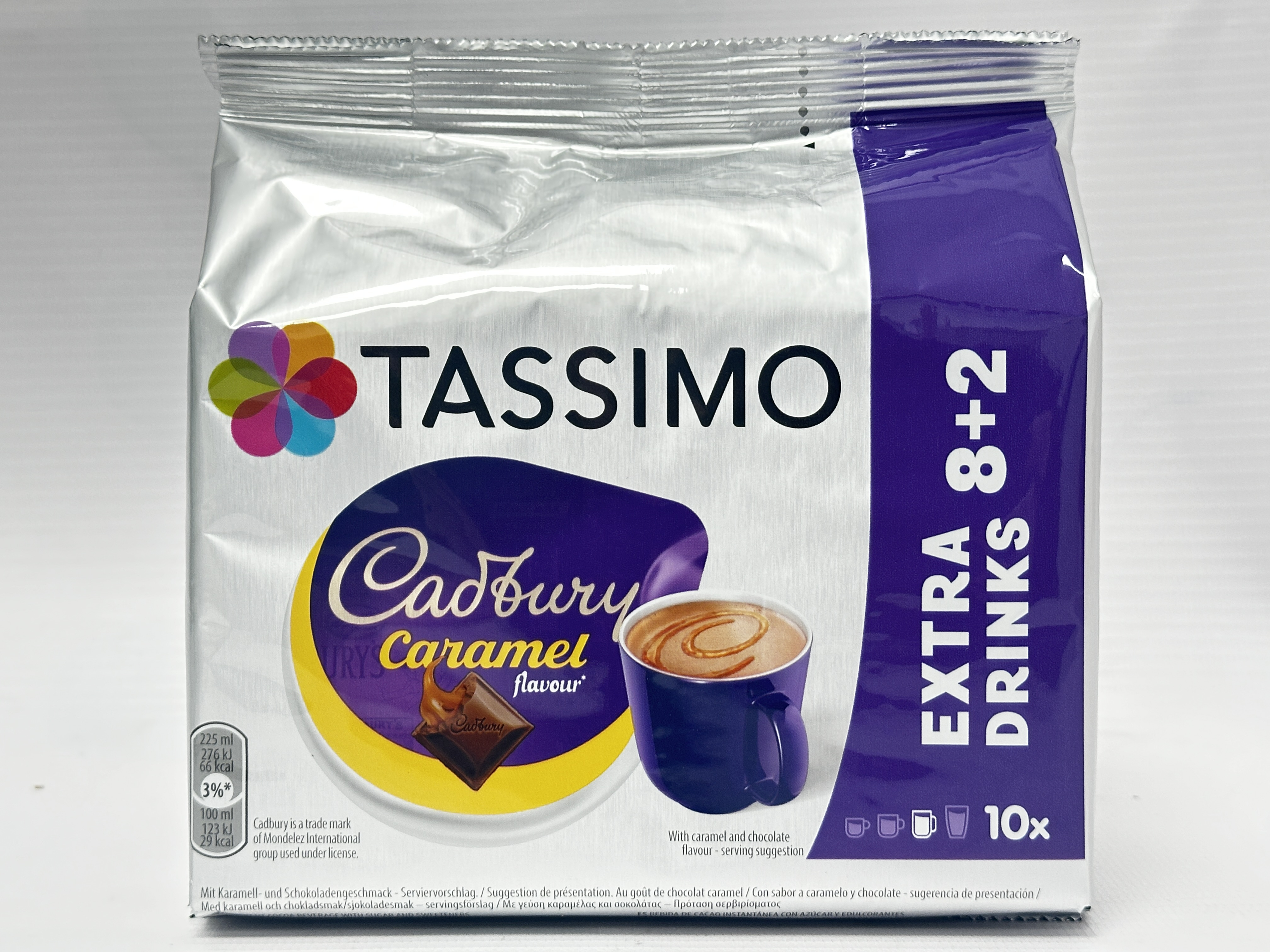 Tassimo Cadbury Caramel Hot Chocolate Pods are a smooth instant cocoa beverage with sugar and sweeteners, designed for Tassimo machines. This pack contains 10 pods and makes 10 drinks, making it a handy option for cosy evenings, family treats or keeping a favourite hot chocolate in the cupboard.