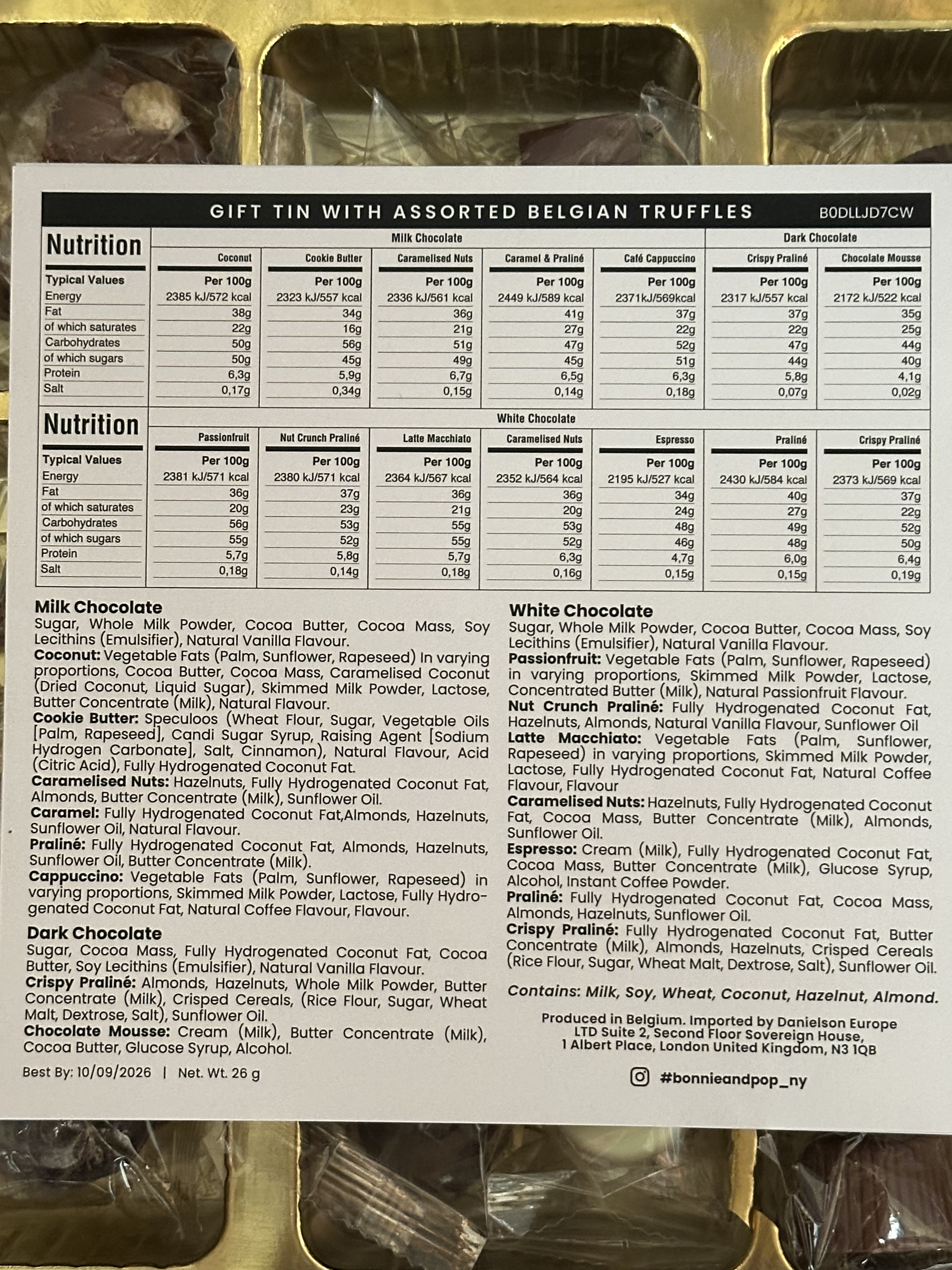 Bonnie & Pop Luxury Chocolate Truffles 250g In Red Tin