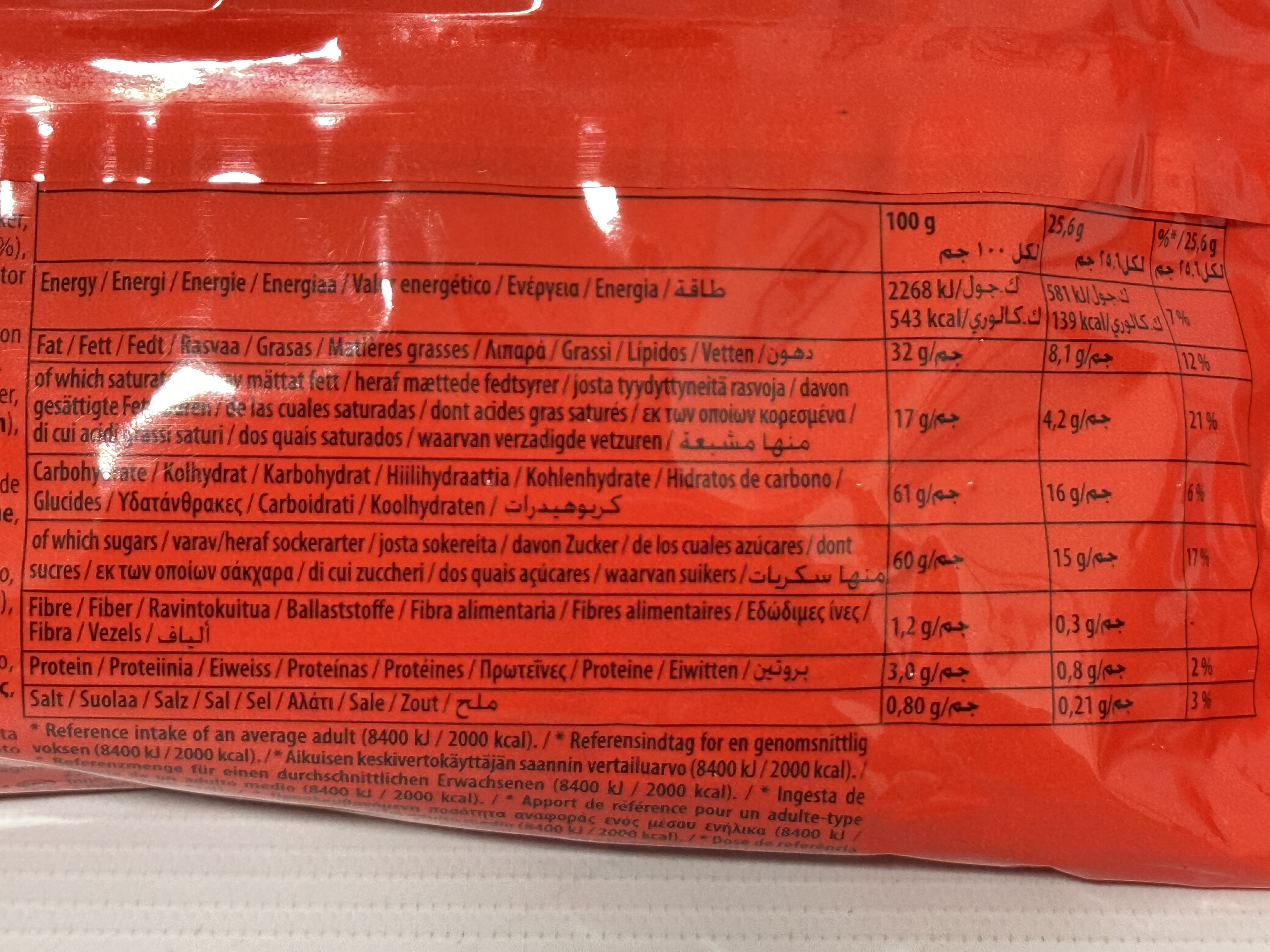 Fat: 32 g (of which saturates 17 g)