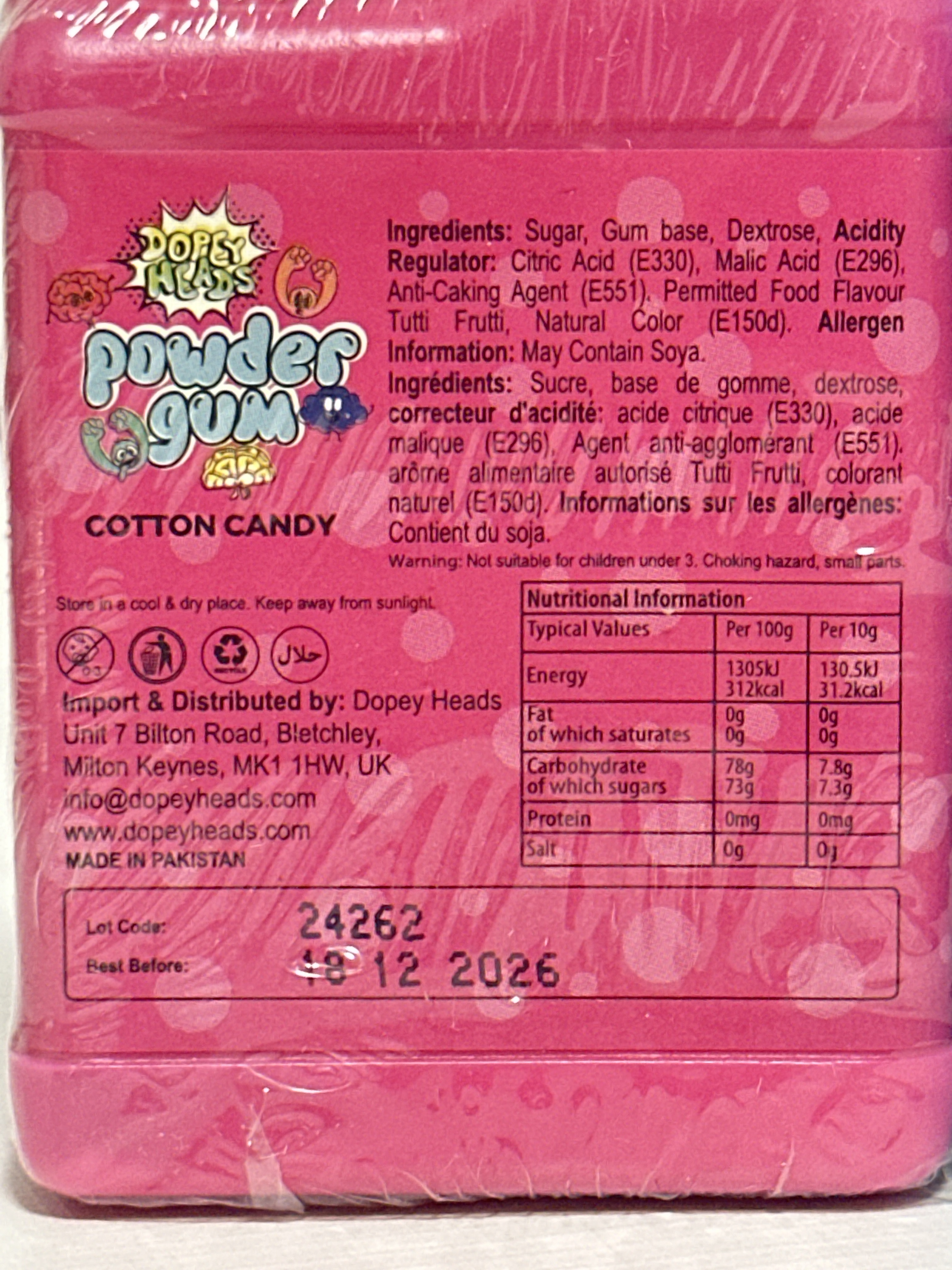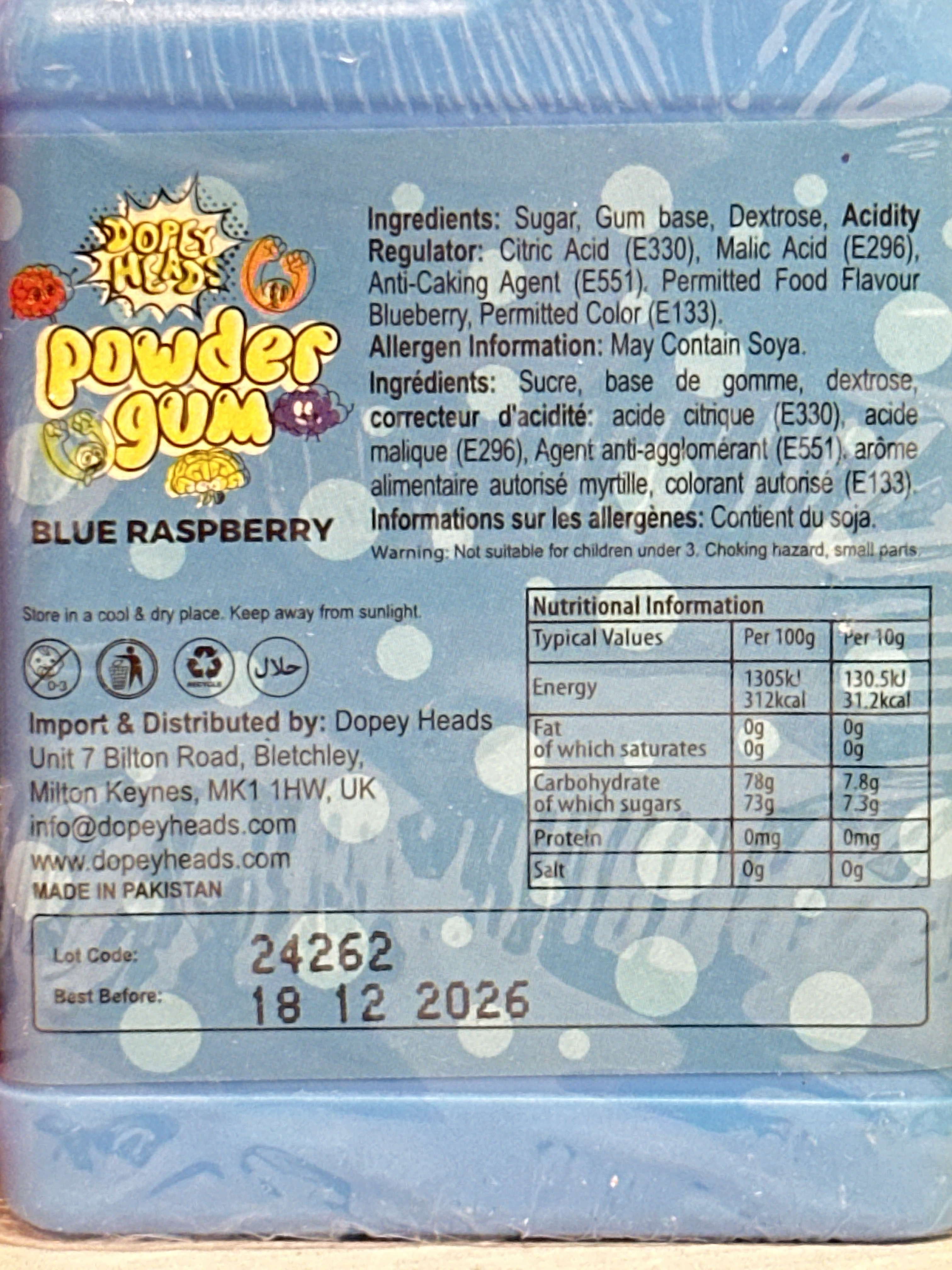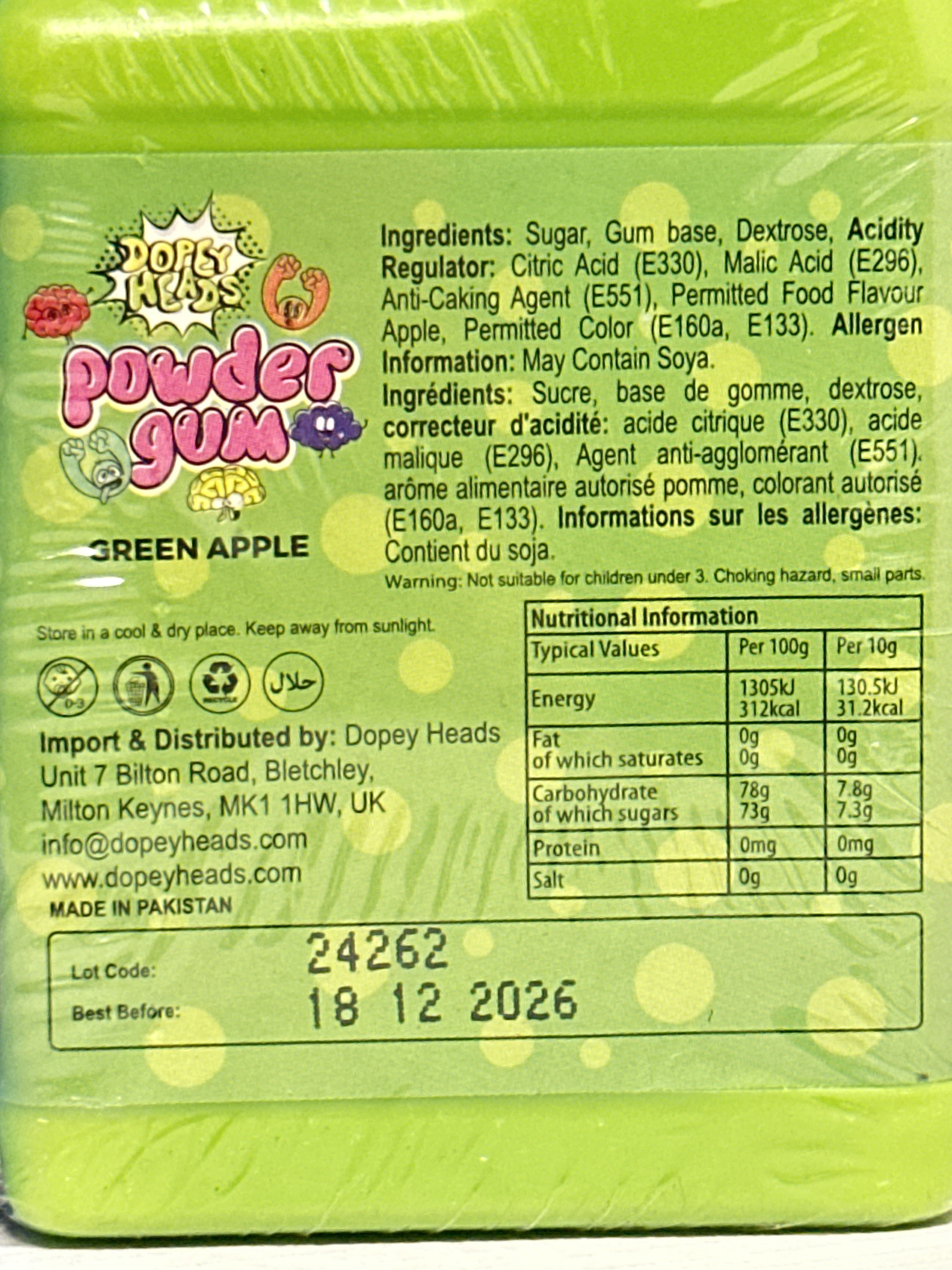 Dopey Heads Powder Bubble Gum | Assorted Fruit Flavours | 3 × 40 g