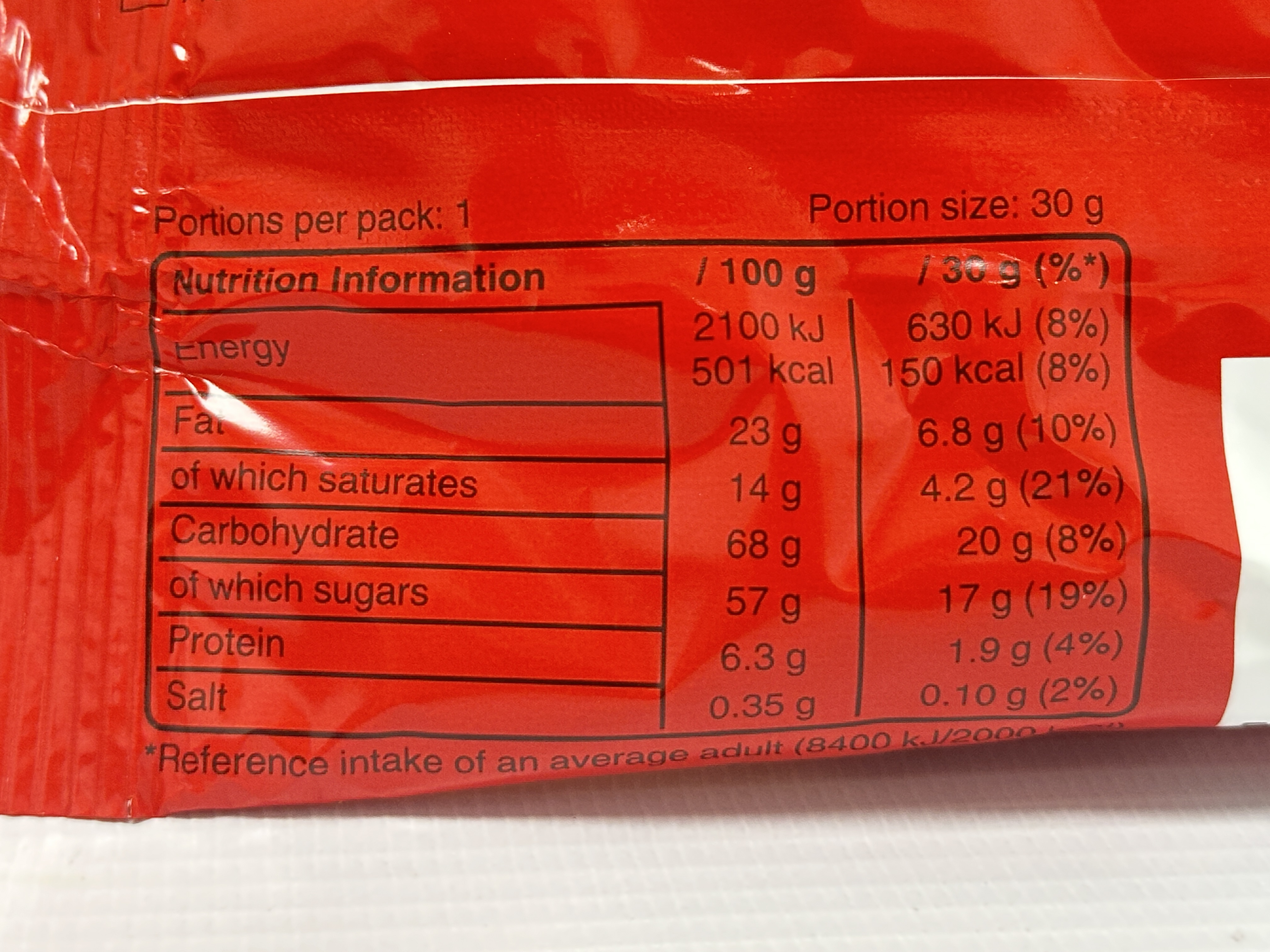 • 30g per bar – 750g total pack weight