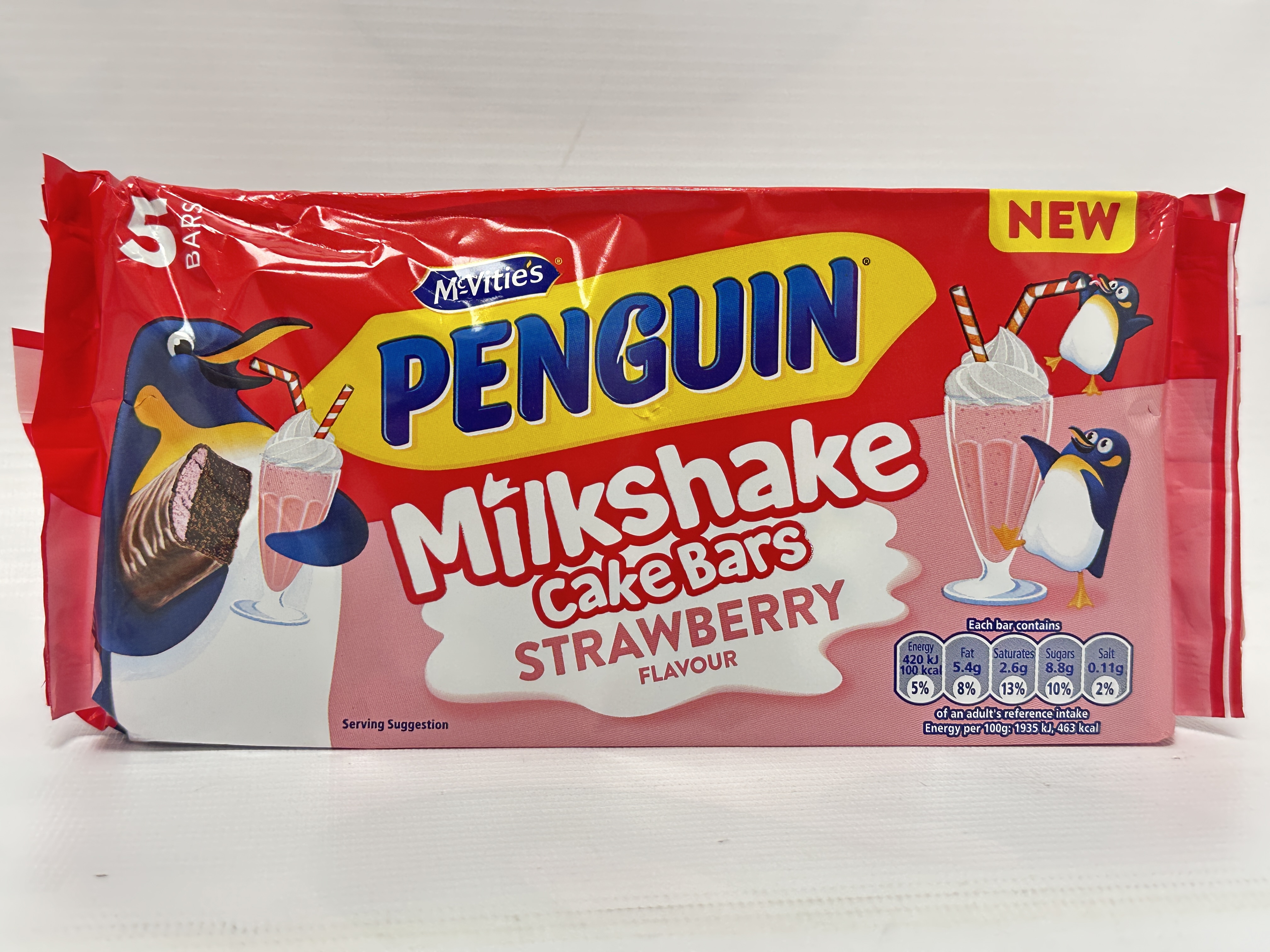 McVitie's Penguin Milkshake Cake Bars, 5 Strawberry Flavour Snacks, 122 g (Pack of 1)