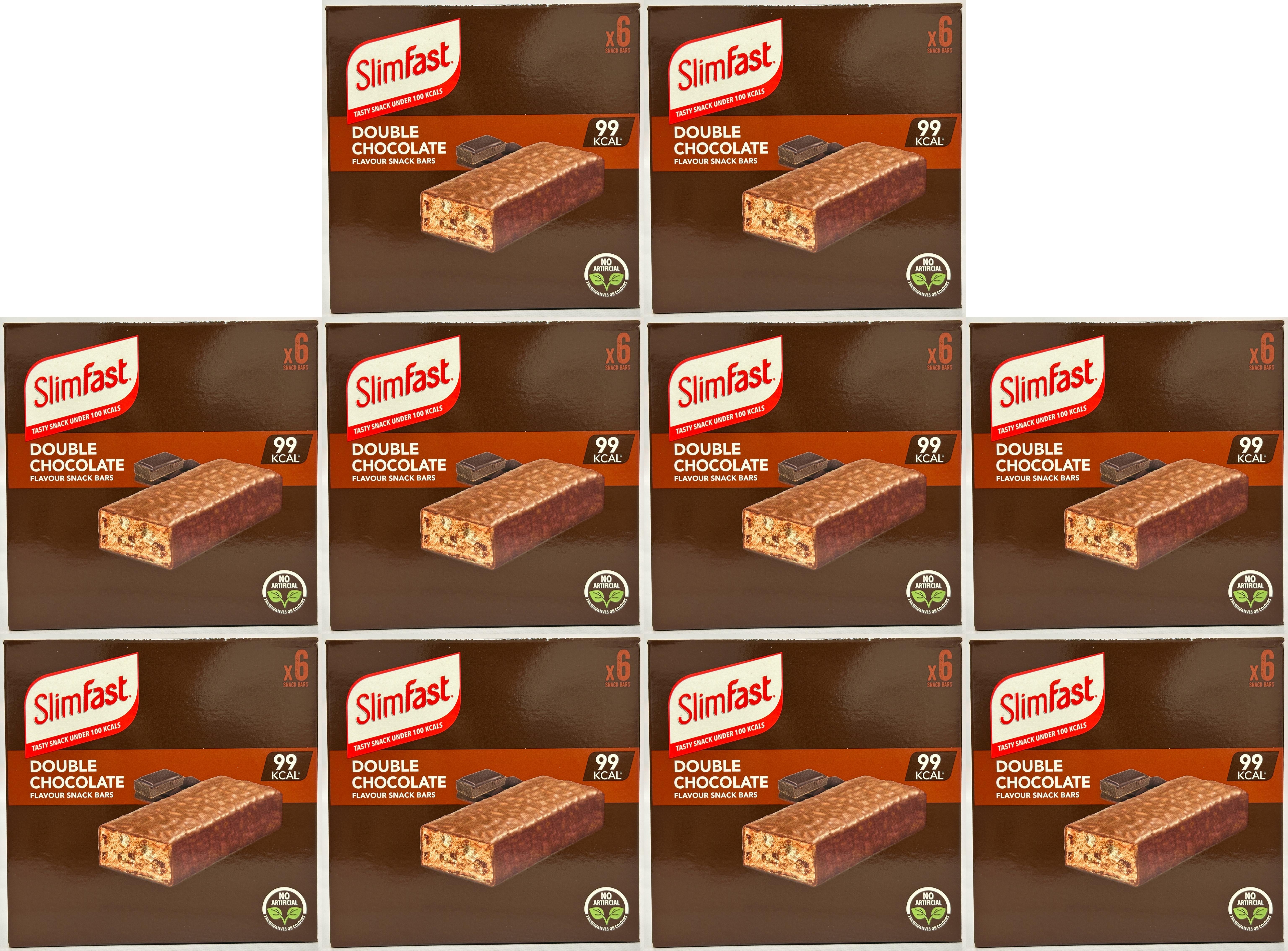 SlimFast Double Chocolate Flavour Snack Bars | Low Calorie Snack Bars Under 100 Kcal | 60 x 25g (10 Packs of 6 Bars)