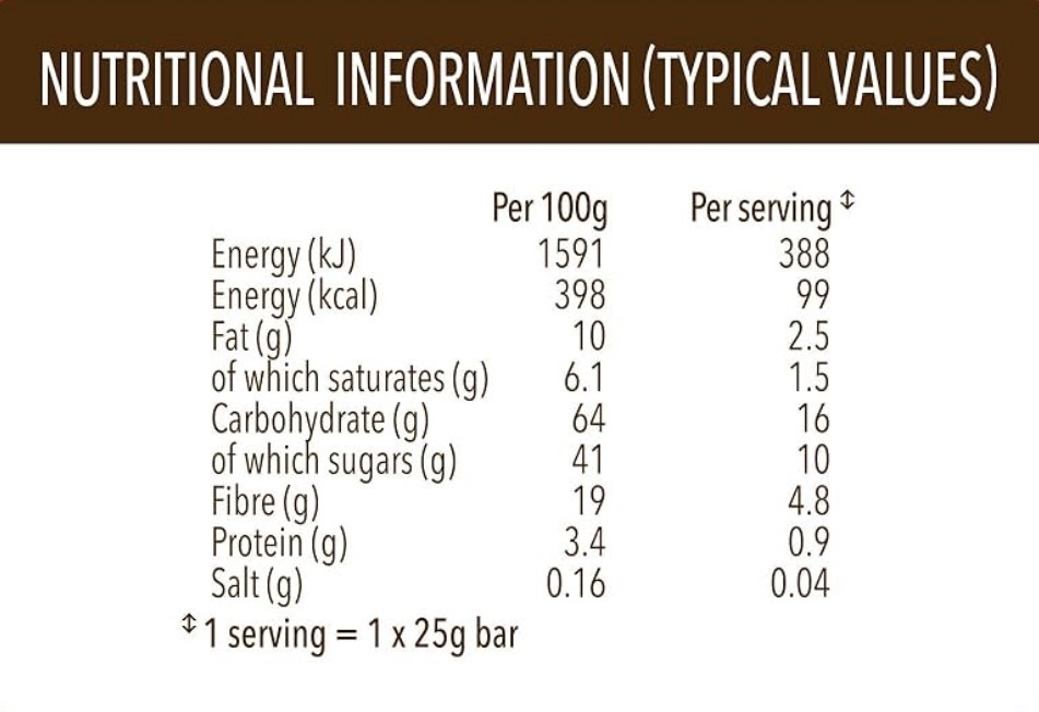 Nutritional Information (Per 100g / Per 25g Bar)