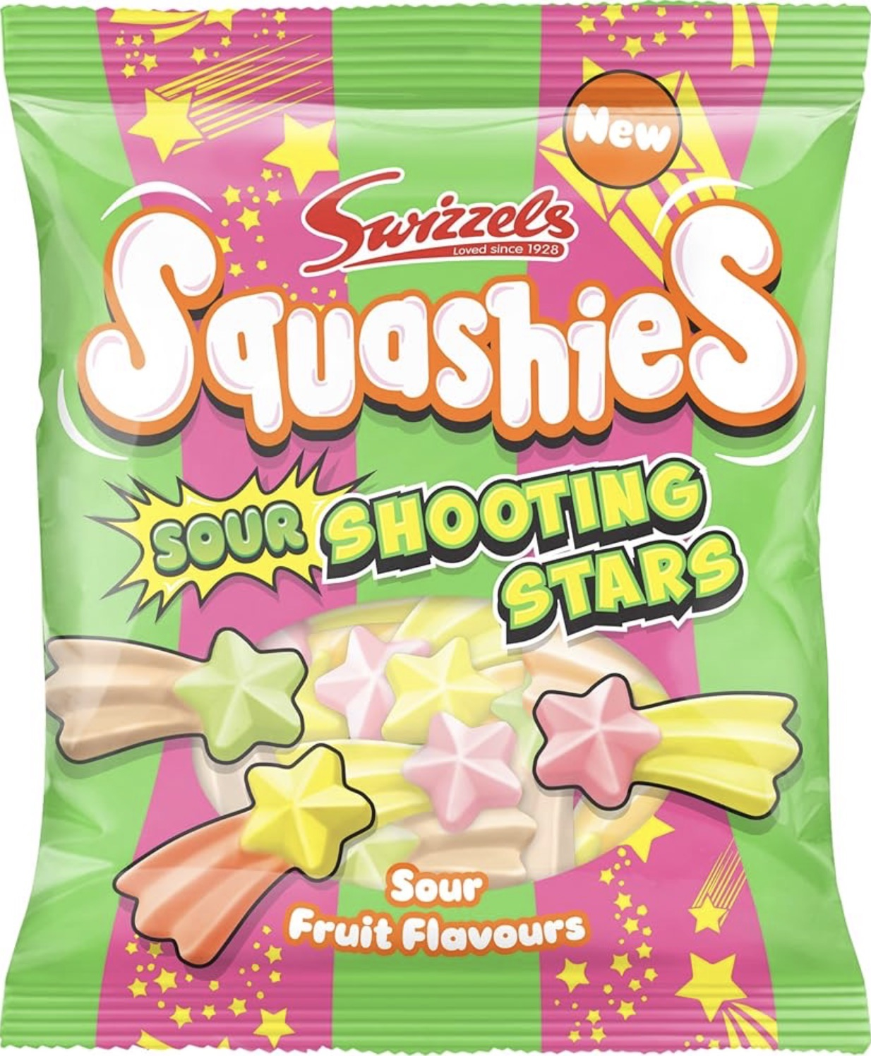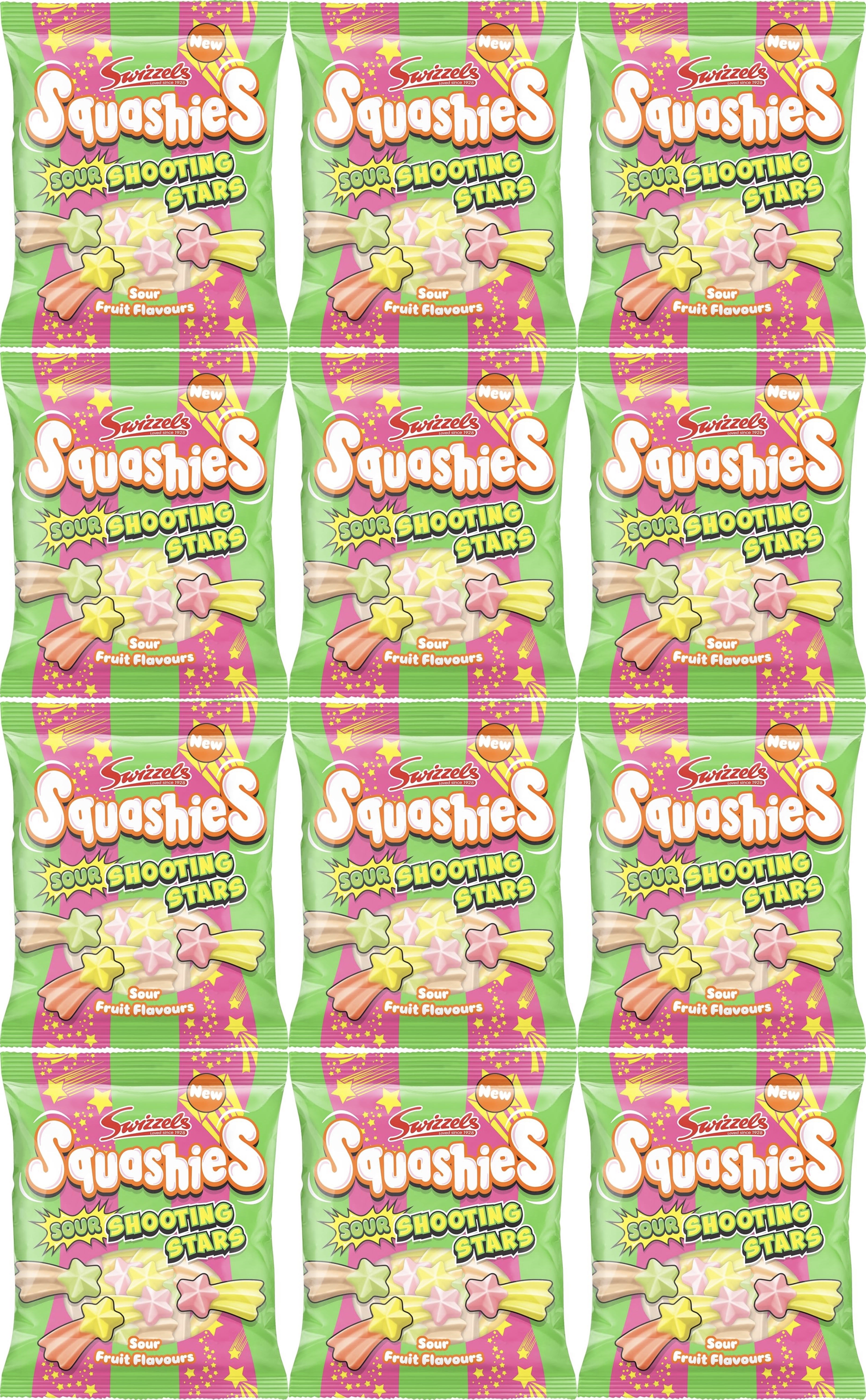 Swizzels Squashies Sour Stars are soft, foam-style sweets with a tangy sour coating and mixed fruit flavours. Each 100g bag contains star-shaped sweets with a chewy texture and a sharp, fruity taste, making them ideal for sharing, parties, pick-and-mix displays or bulk resale. This listing is for a full case of 12 individual 100g bags, supplied exactly as shown on the packaging.