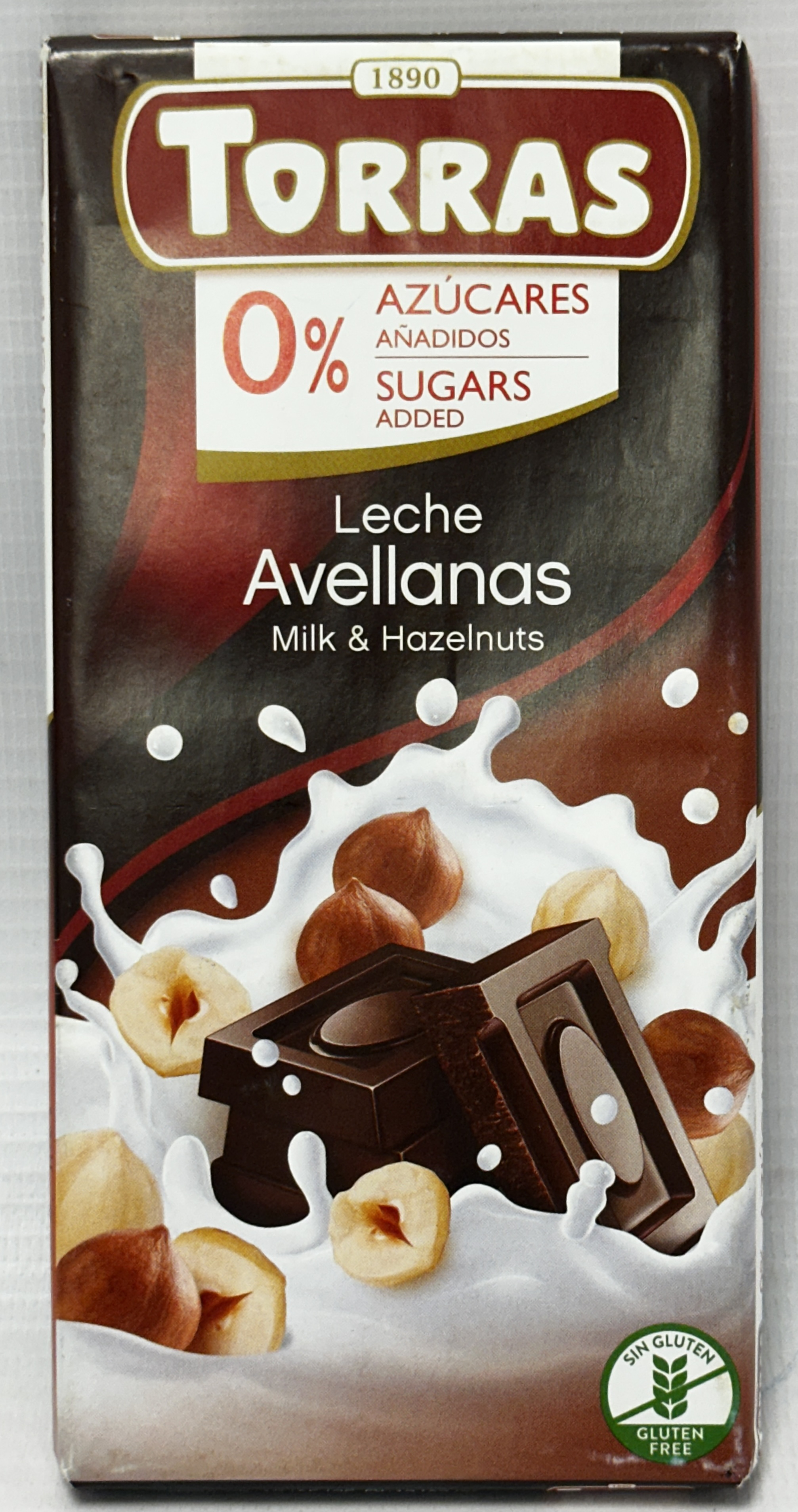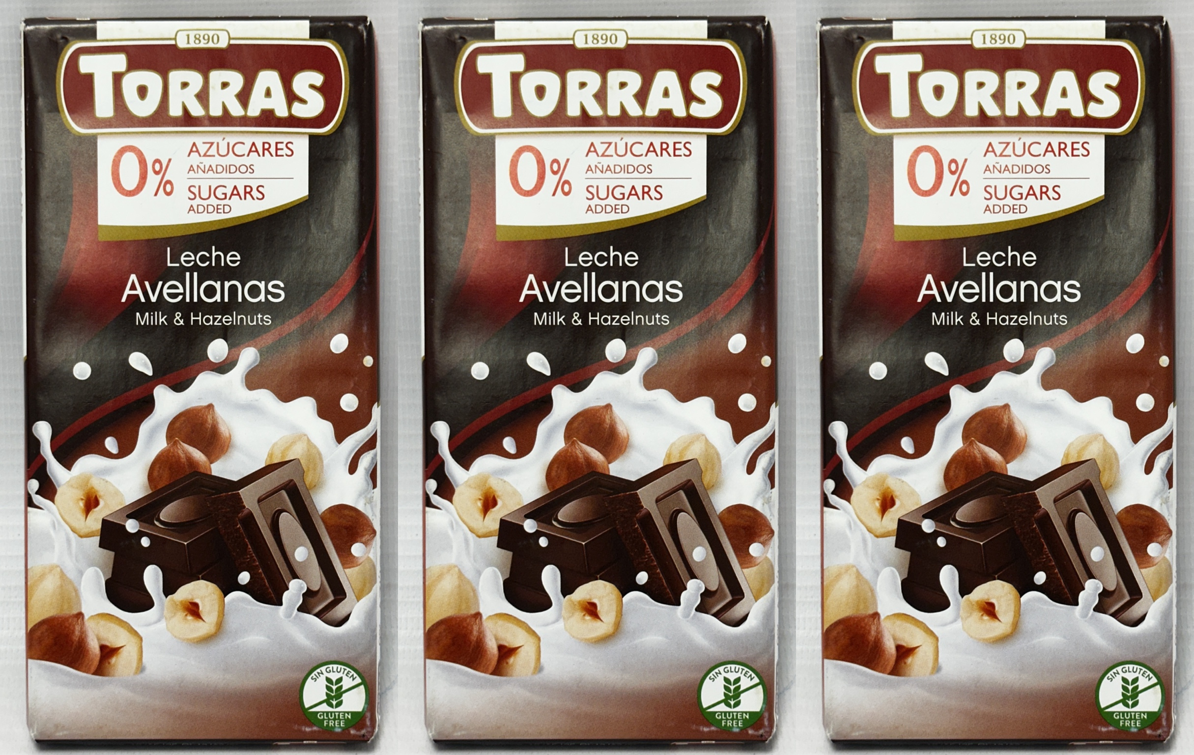 Torras No Added Sugar Milk Hazelnut Chocolate Bars 3 x 75g