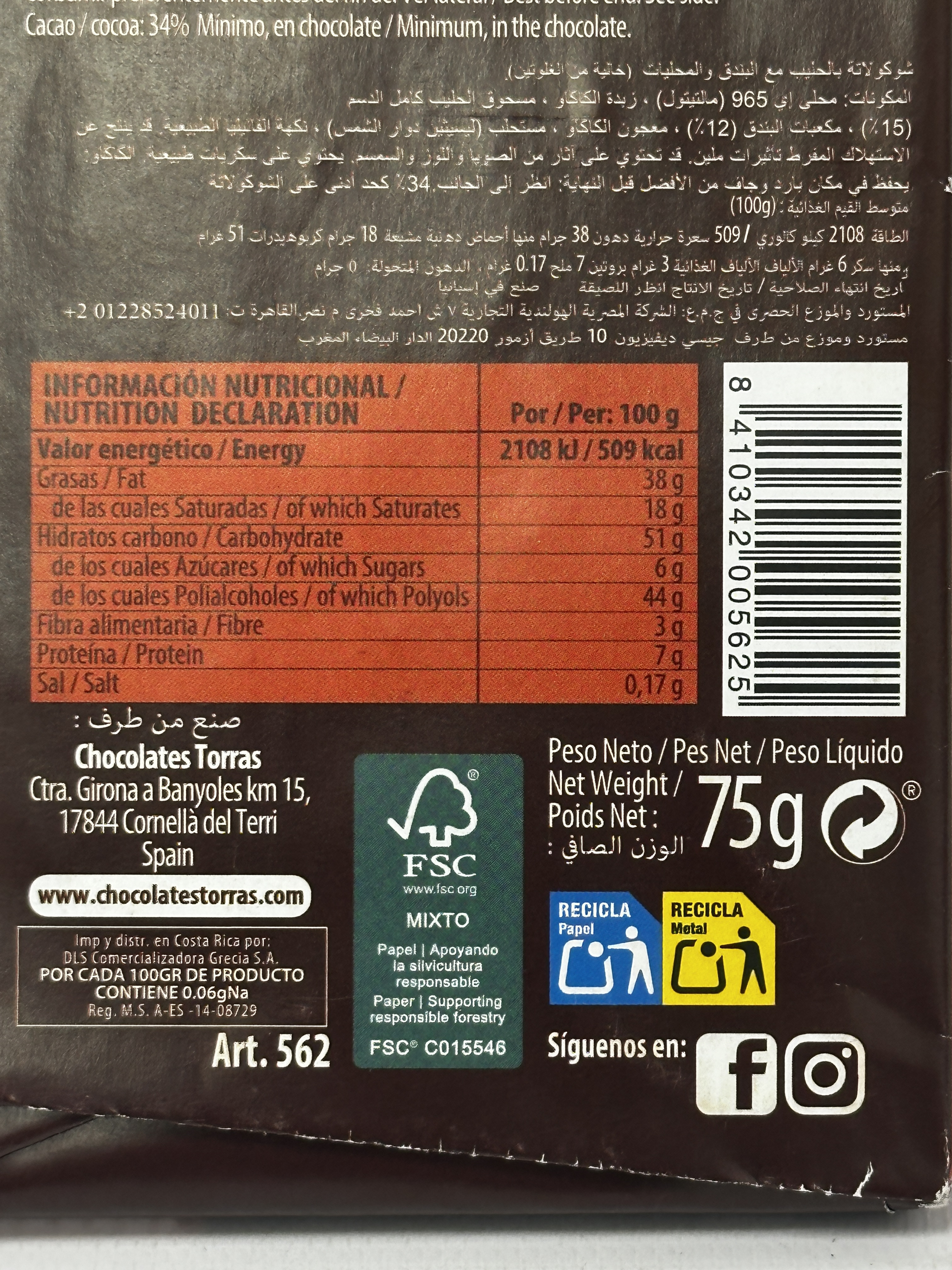 Torras No Added Sugar Milk Hazelnut Chocolate Bars are a smooth milk chocolate treat with hazelnut pieces, supplied here as a handy pack of 3 x 75g bars. Made with sweetener instead of added sugar, these bars are a practical option for anyone looking for a milk chocolate and hazelnut combination in a convenient multipack format.