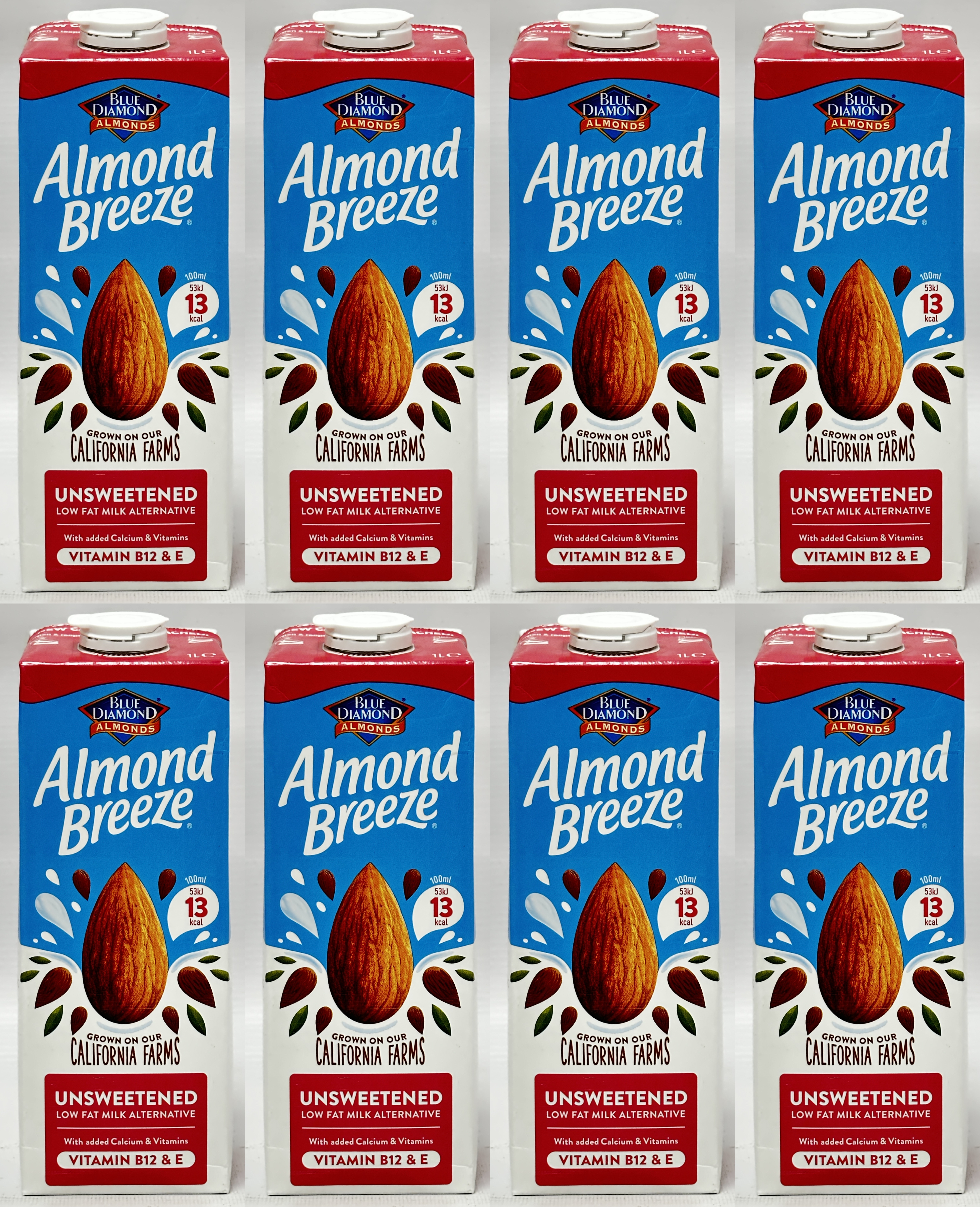 Blue Diamond Almond Breeze Unsweetened is a long life almond drink in a convenient 8 x 1 litre multipack. This unsweetened almond milk alternative is a practical cupboard choice for cereal, smoothies, coffee, tea and everyday drinking.
