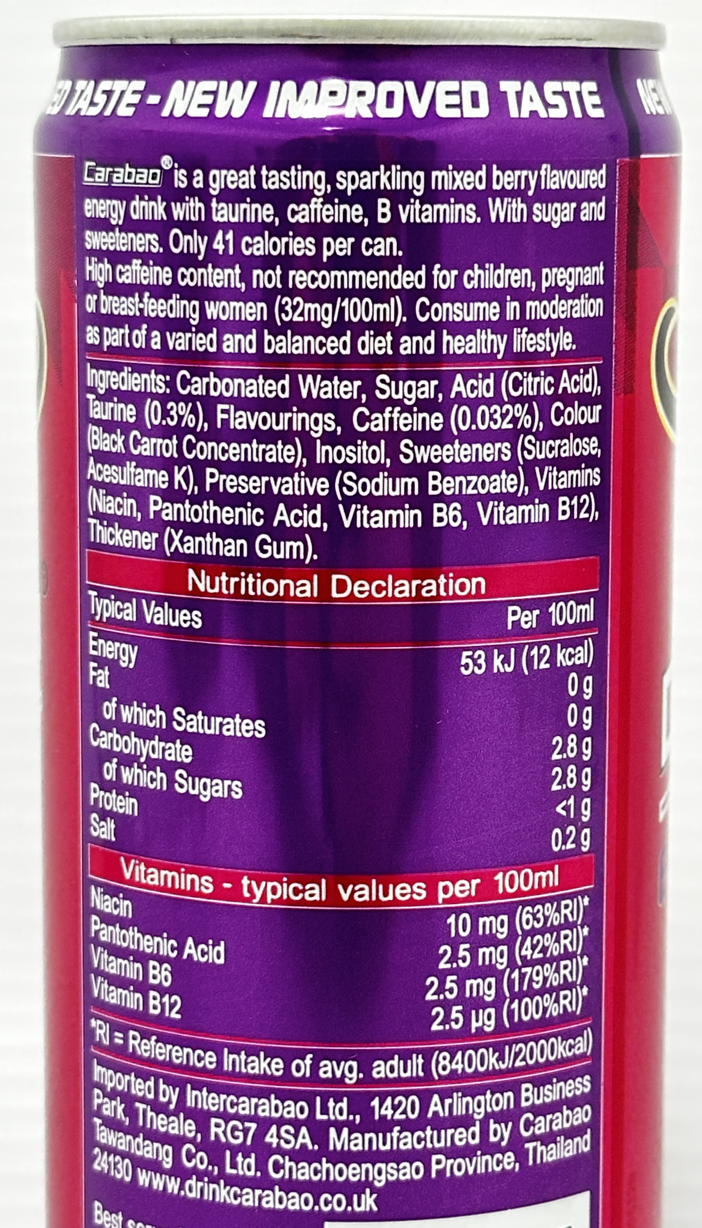 Carabao Mixed Berry Energy Drink 12 x 330ml Cans Low Calorie