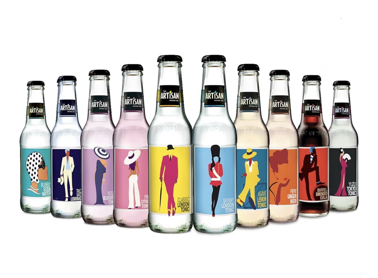 The Artisan Flair set includes - 3 x Classic London Tonic, 3 x Skinny London Tonic, 3 x Pink Citrus Tonic, 2 x Agave Lemon Tonic, 2 x Yuzu Tokyo Tonic, 2 x Violet Blossom Tonic, 2 x Barrel Smoked Cola, 3 x Fiery Ginger Beer, 2 x Tailor Made Lemonade & 2 x Bubbly Soda Water