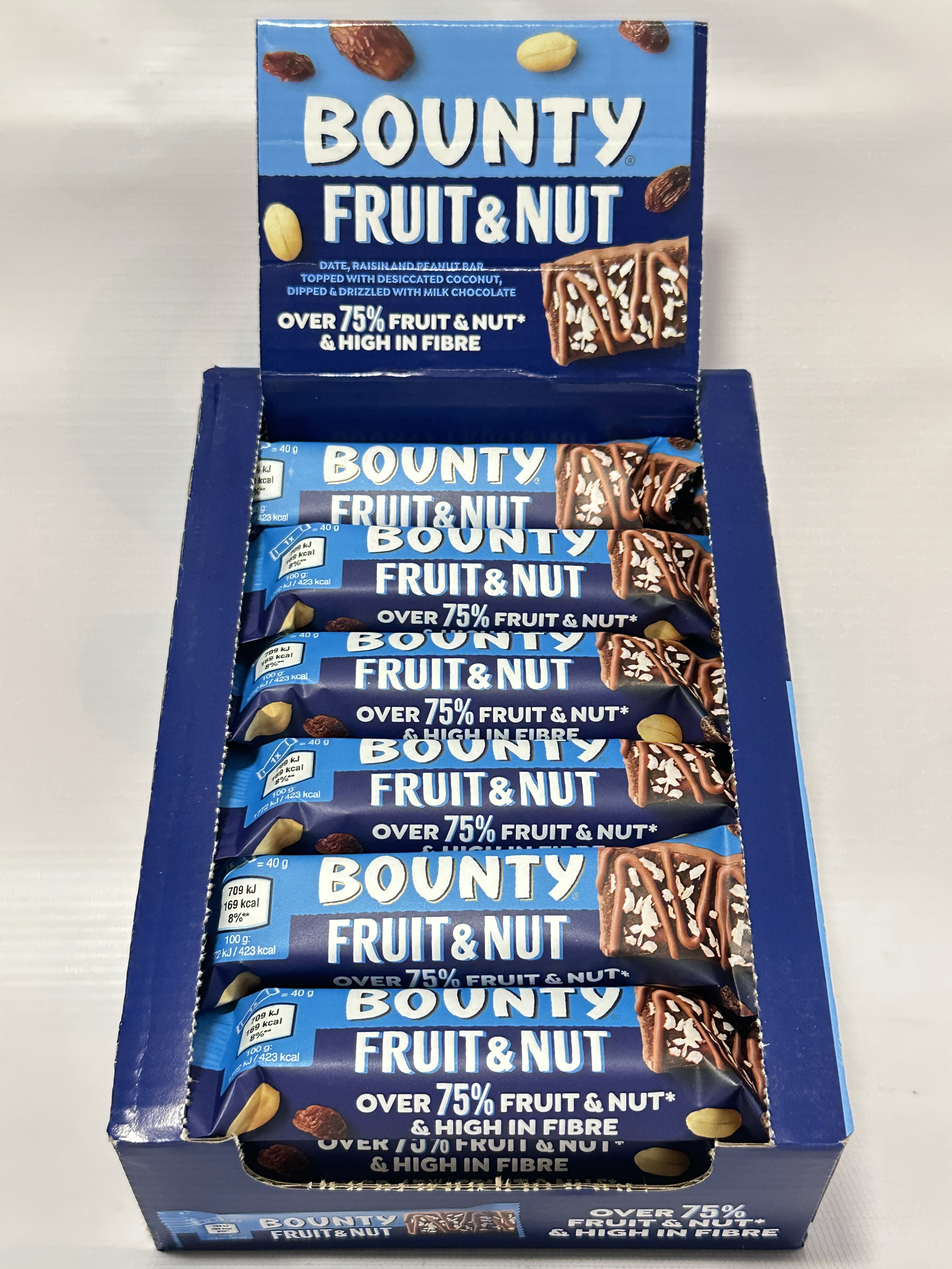 Bounty Fruit & Nut Milk Chocolate Snack Bars – 18 x 40g (720g Box)