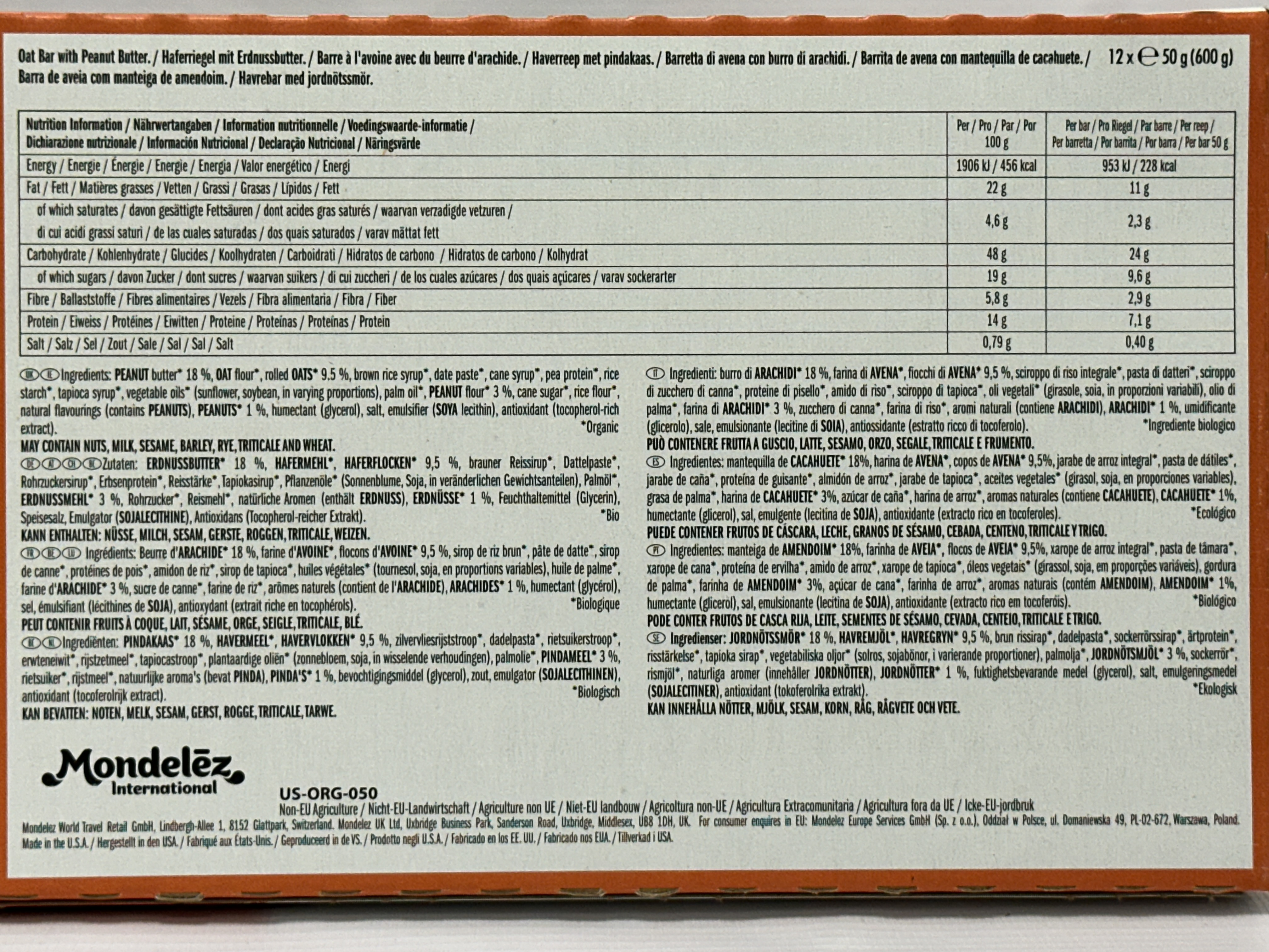 Allergens: Peanuts, Oats (Gluten), Soy. May contain Nuts, Milk, Sesame, Barley, Rye, Triticale and Wheat.