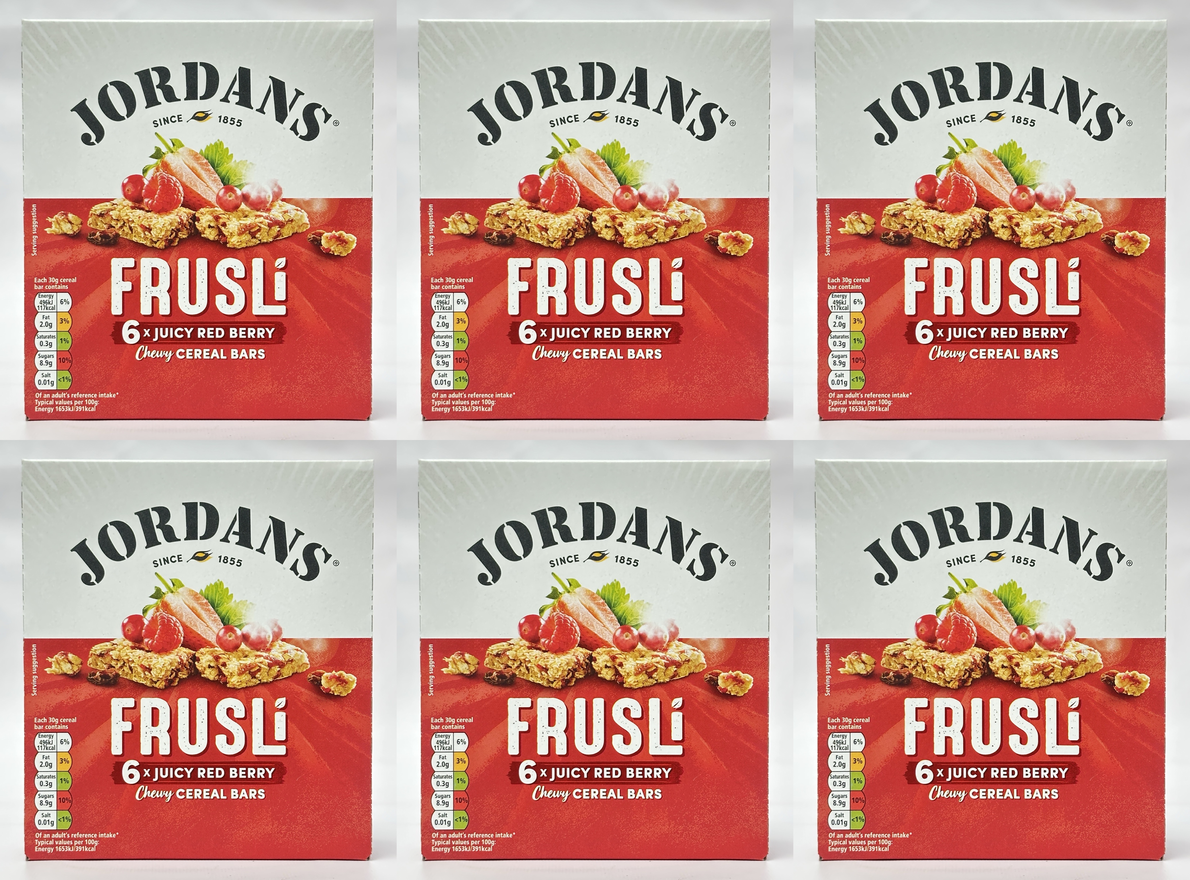 Jordans Frusli Juicy Red Berry Cereal Bars | Wholegrain Oat Snack Bars | 6 Packs (36 Bars Total)