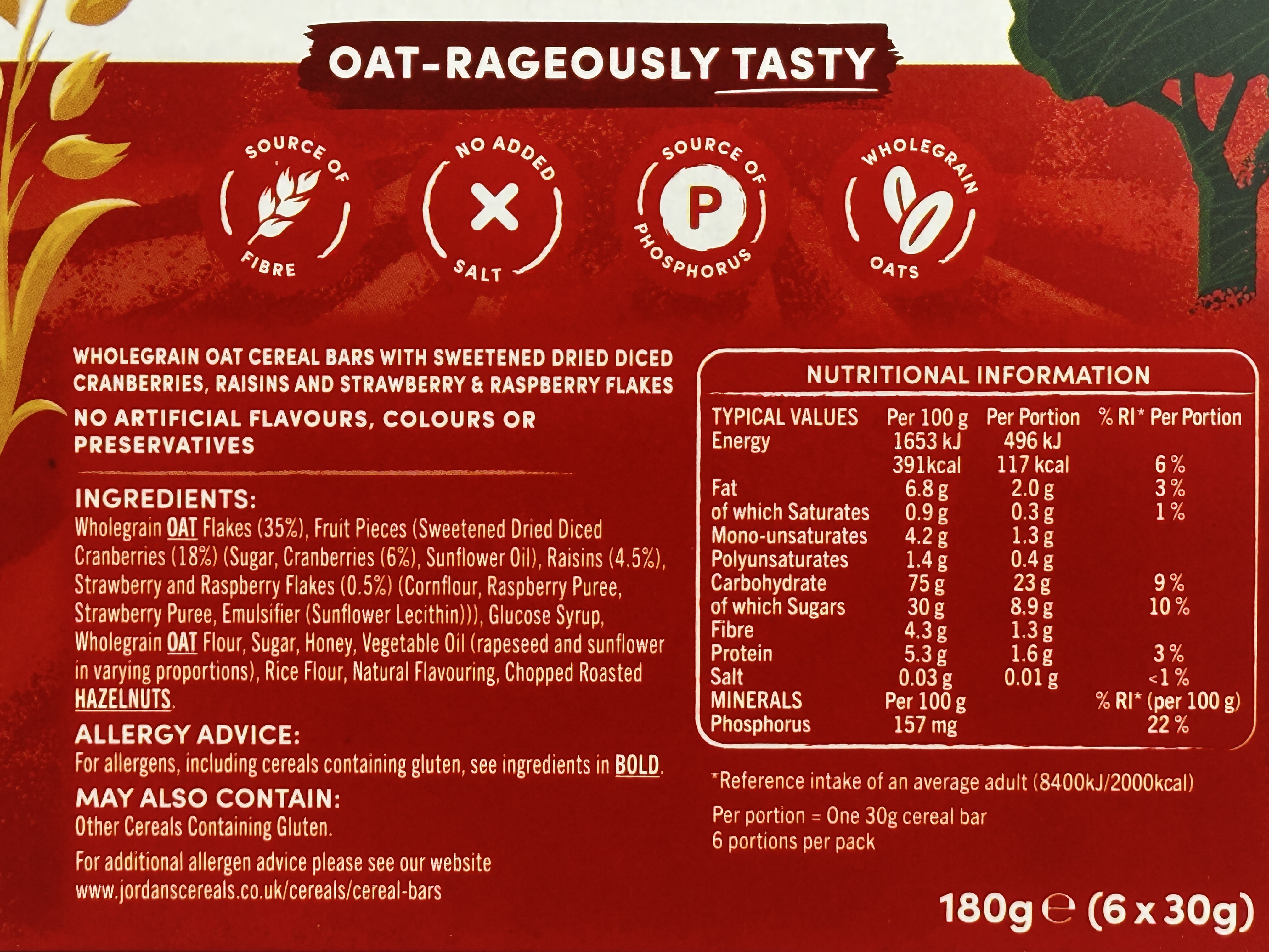 Contains oats (gluten) and hazelnuts.