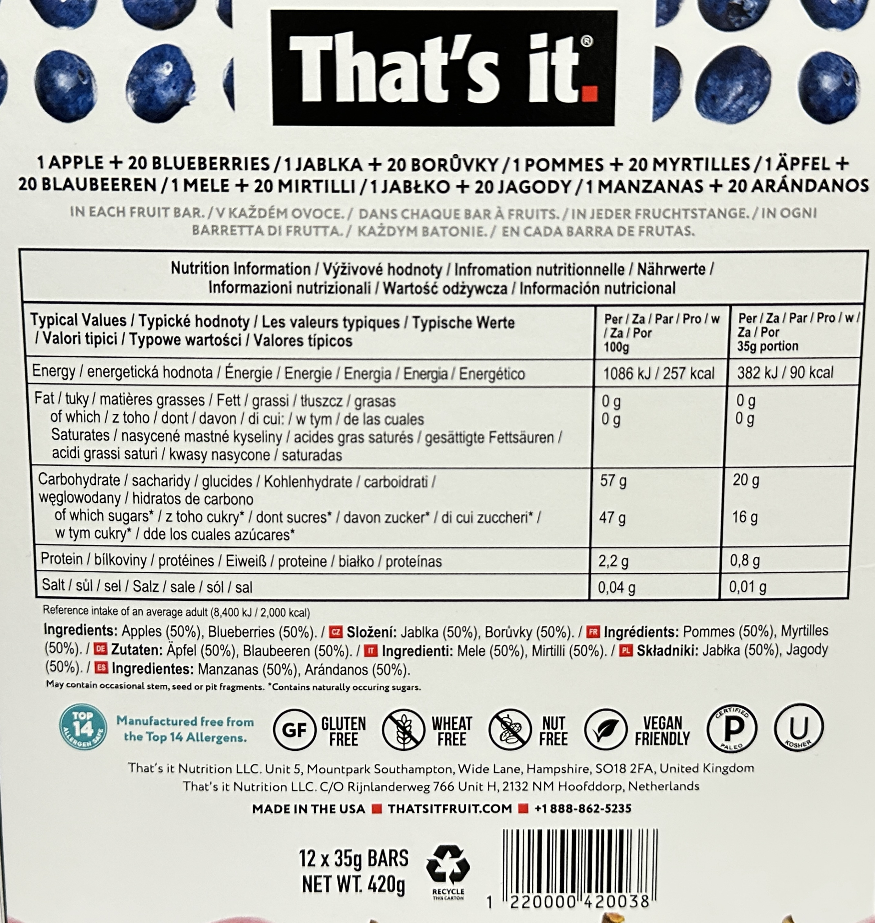 That’s it. Apple & Blueberry Fruit Bars – 100% Fruit – 24 x 35g