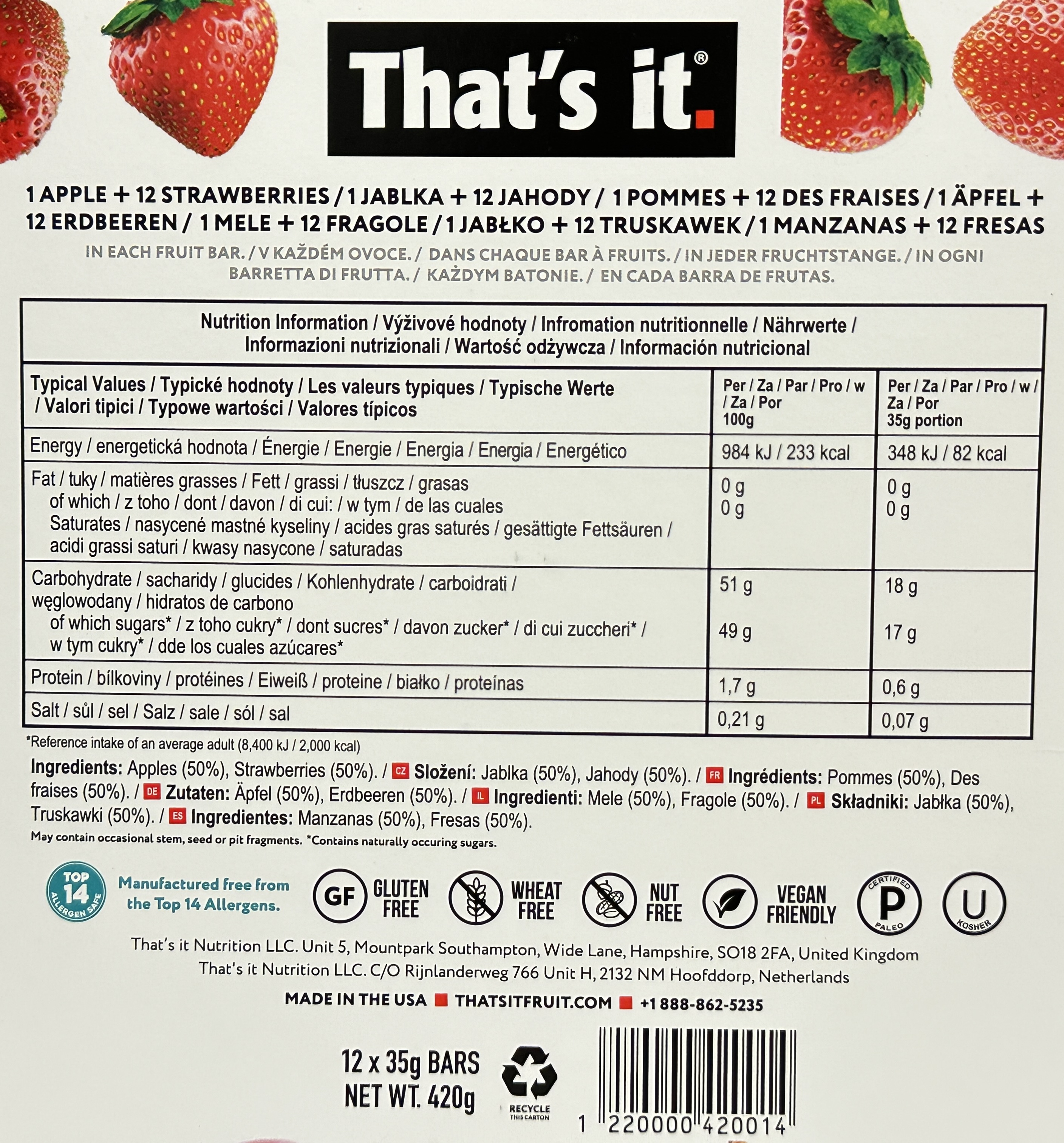 That’s it. Apple & Strawberry 100% Fruit Bars – No Added Sugar – 12 x 35g