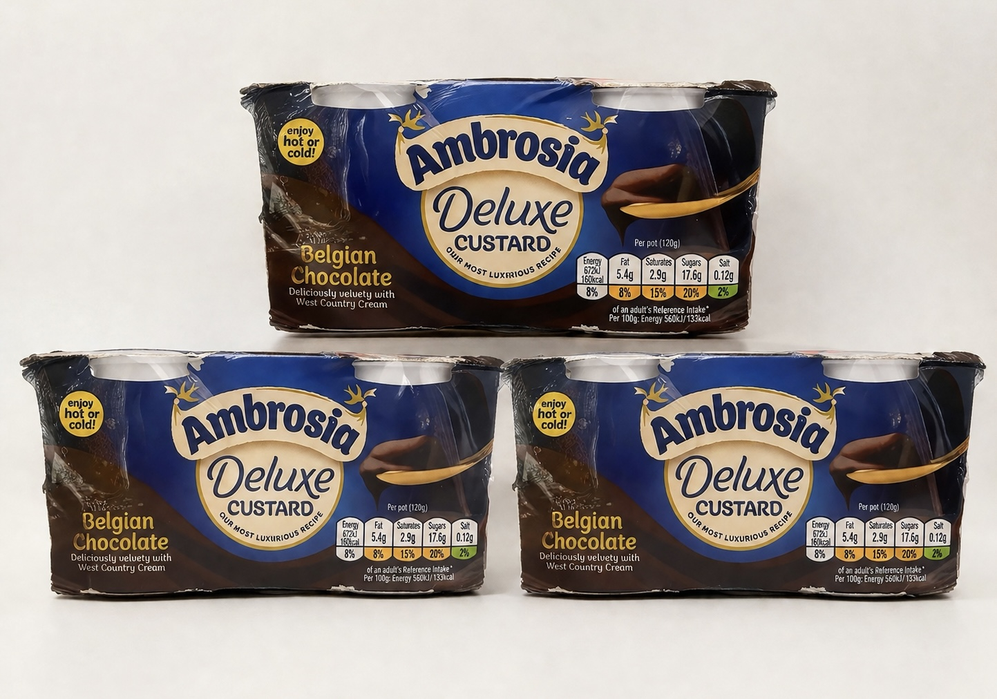 This purchase includes 6 tubs of chocolate custard 120g each