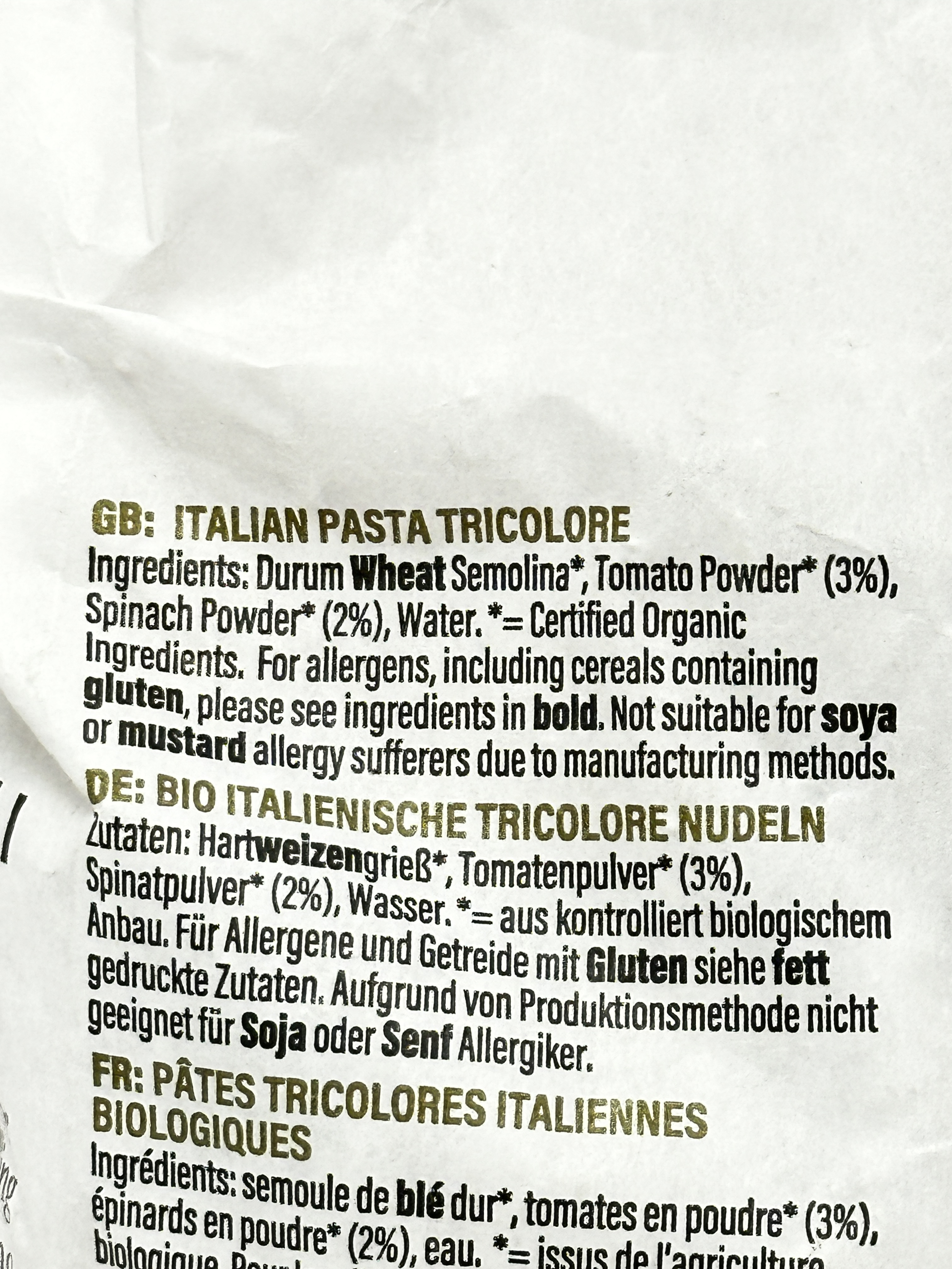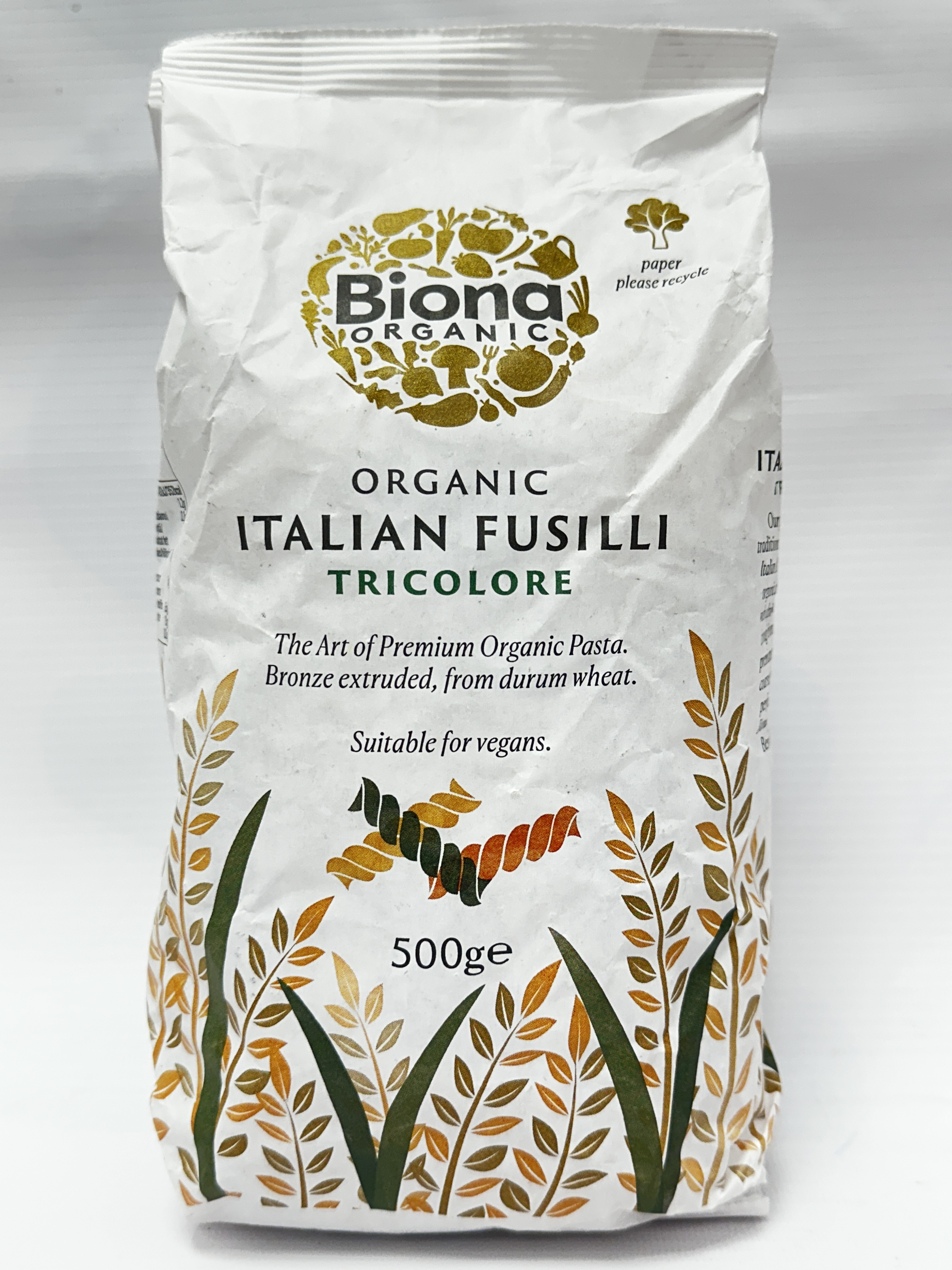 - Organic Italian fusilli tricolore pasta