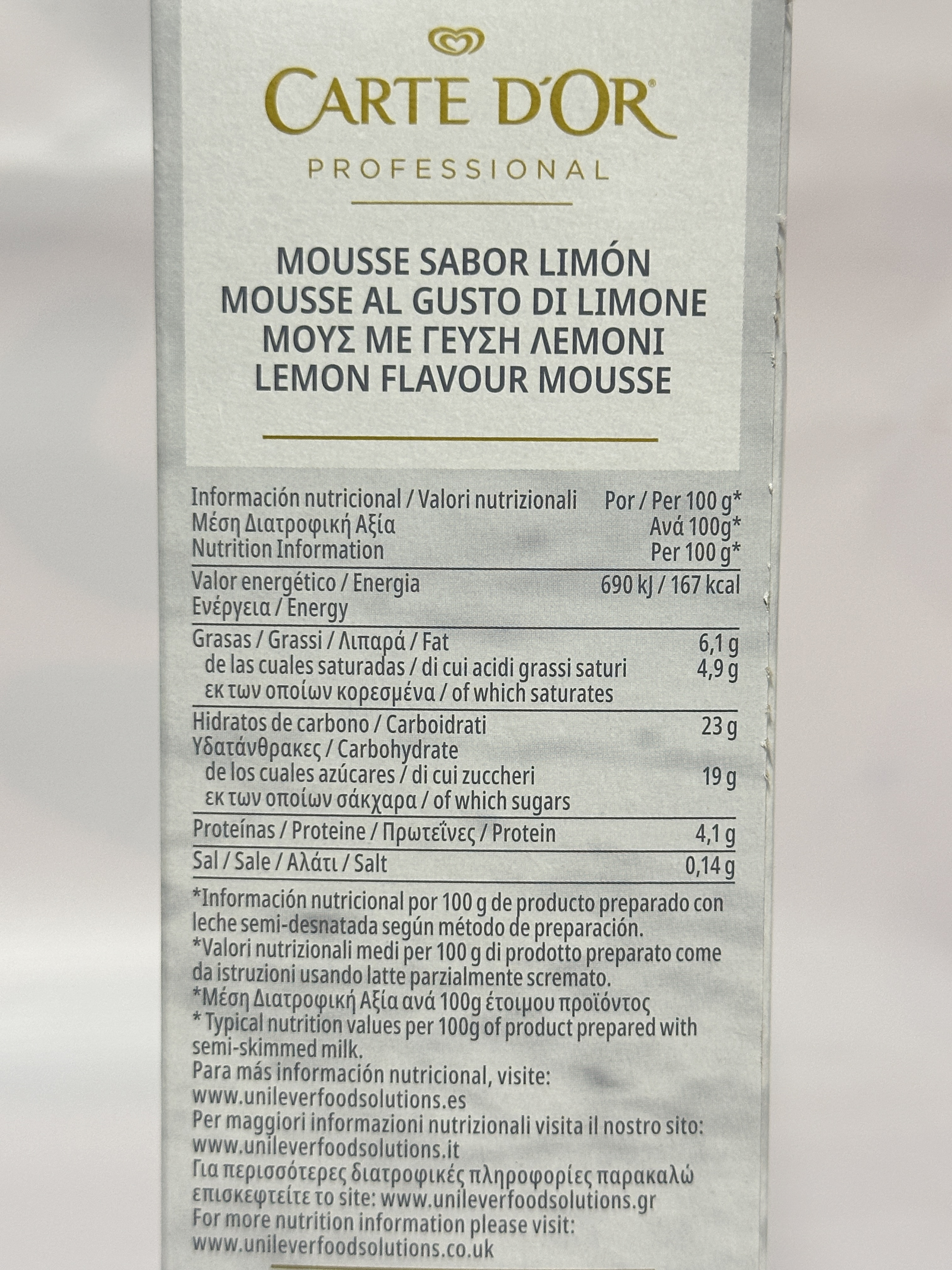 Carte d’Or Professional Lemon Flavour Mousse is a high-quality dessert mix designed for professional kitchens and foodservice use. This easy-to-prepare mousse delivers a smooth, light texture with a refreshing lemon flavour, ideal for plated desserts, dessert glasses, or buffet service.
