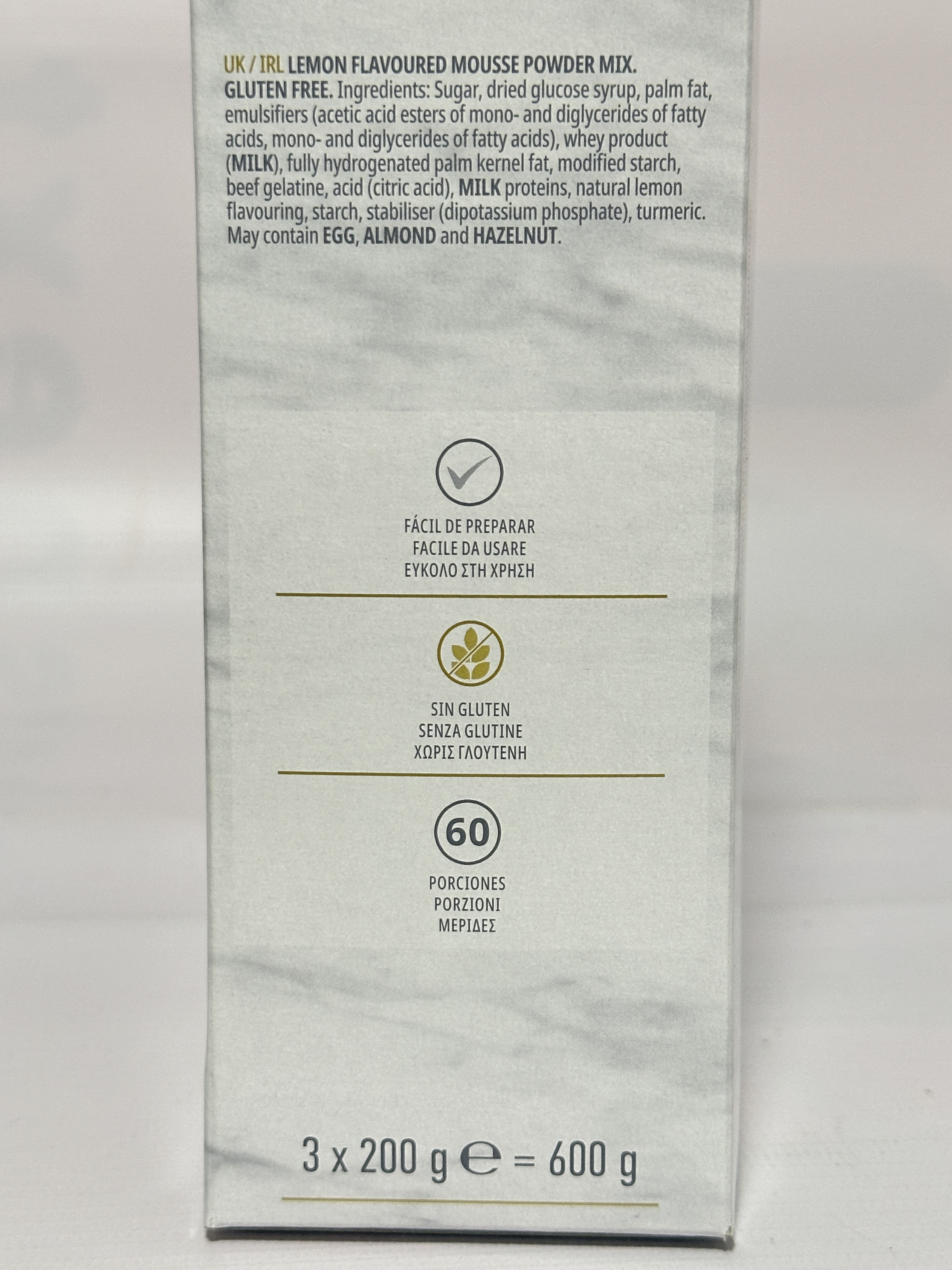 Supplied as three individual 200g sachets, this 600g pack yields up to 60 portions when prepared according to the on-pack instructions. Simply combine with cold milk, whip, portion, and chill to create a consistent, elegant dessert suitable for restaurants, cafés, catering, and hospitality environments.
