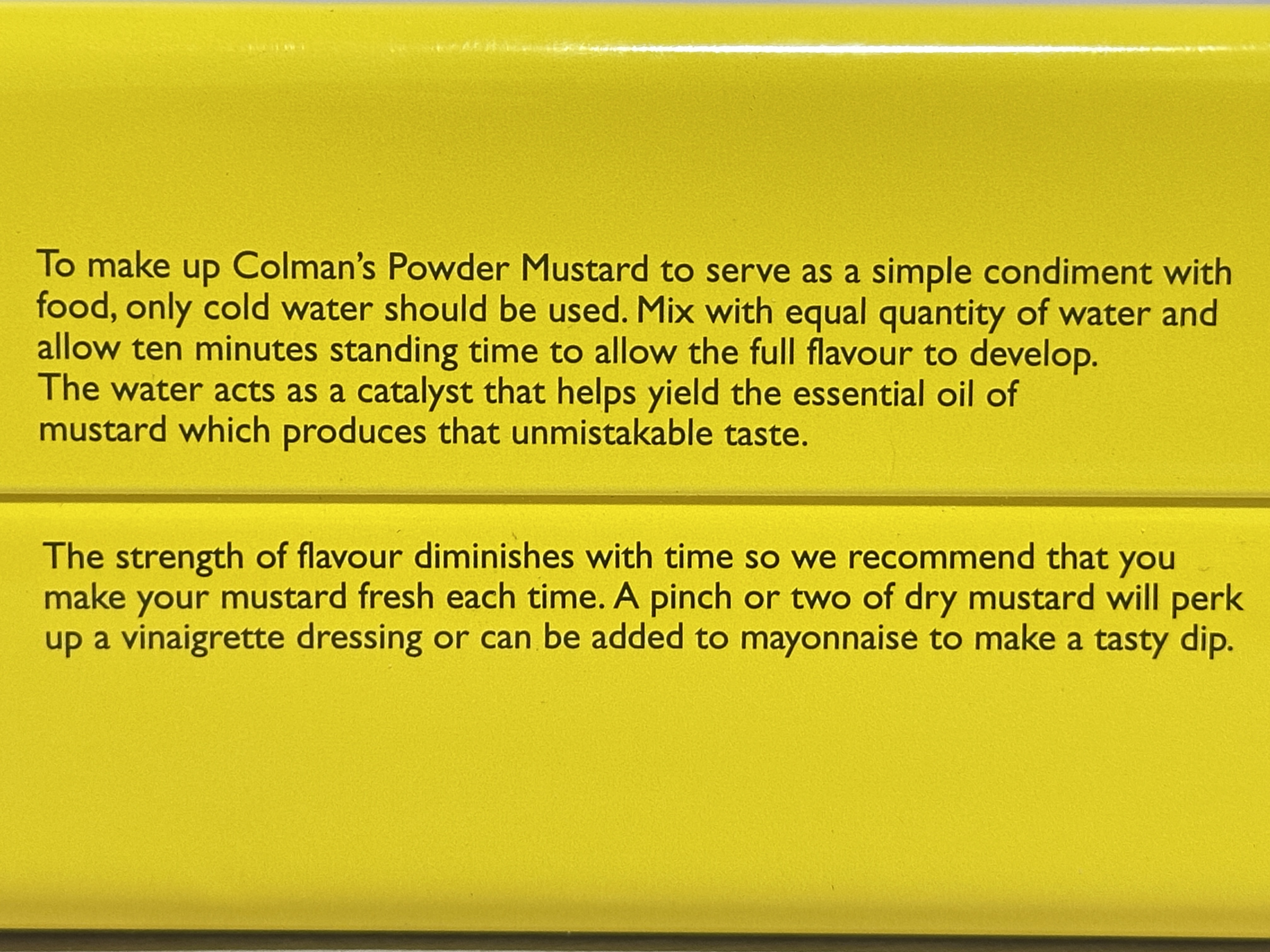 - Make Fresh Mustard Anytime — just mix with cold water for full flavour