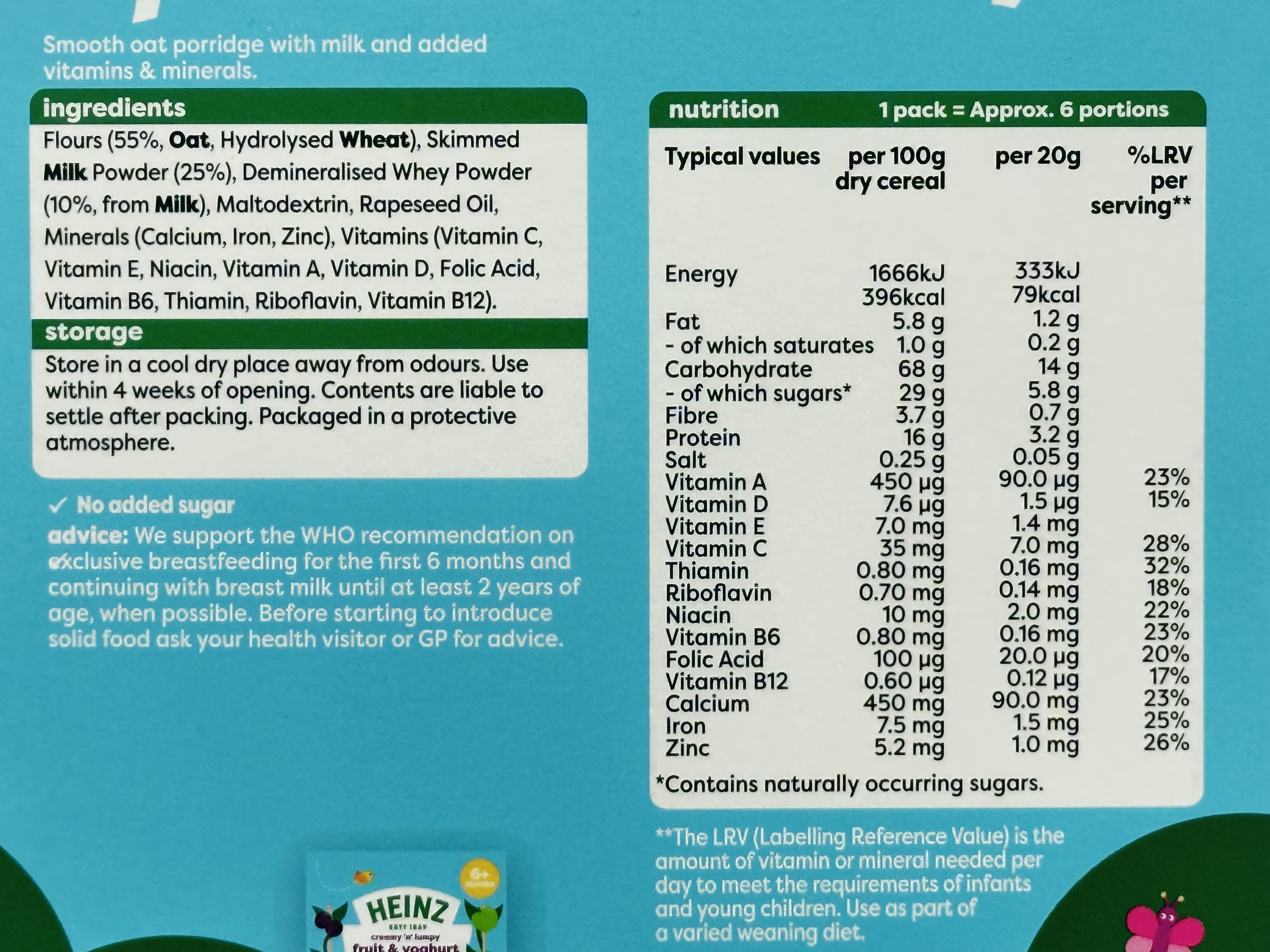 • 7 x 125g boxes of baby oat porridge cereal
