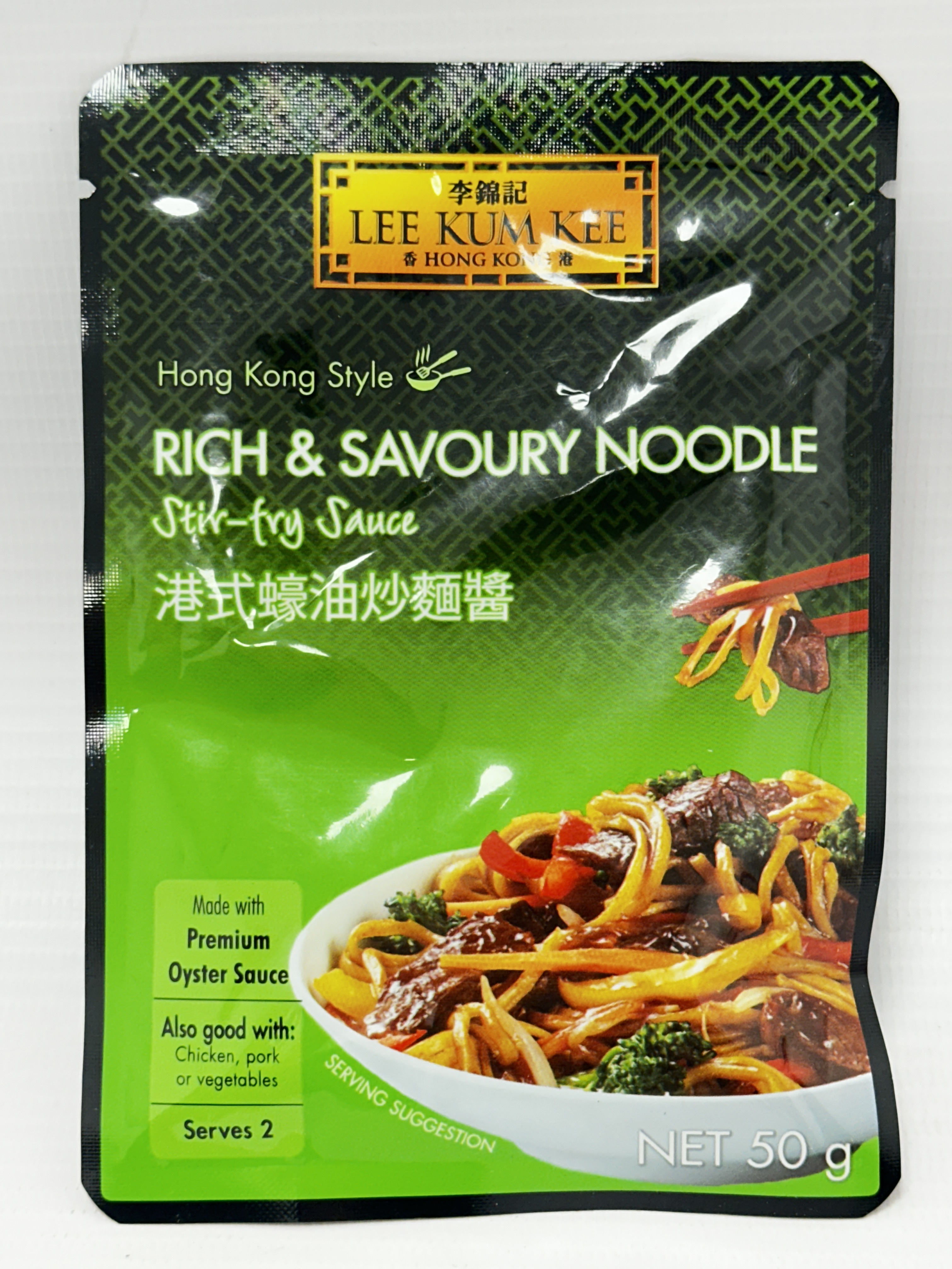 Lee Kum Kee Rich & Savoury Noodle Stir-Fry Sauce is a Hong Kong style stir-fry sauce made for creating rich, savoury noodle dishes at home. Supplied in a convenient 50g sachet, this ready-to-use sauce is ideal for quick noodle meals and helps bring out the umami flavour in meat, vegetables and noodles.