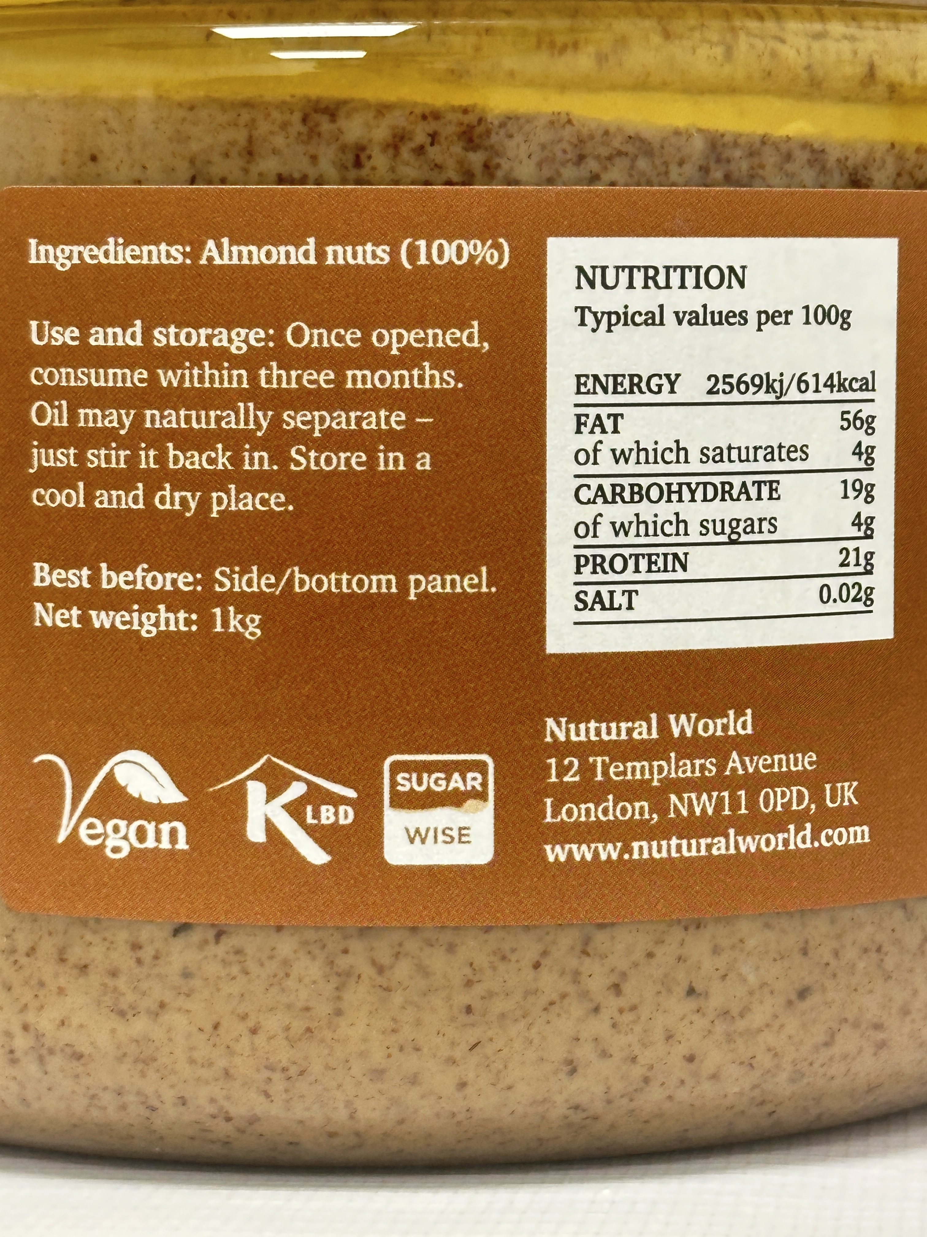 • 1kg large jar of smooth almond butter