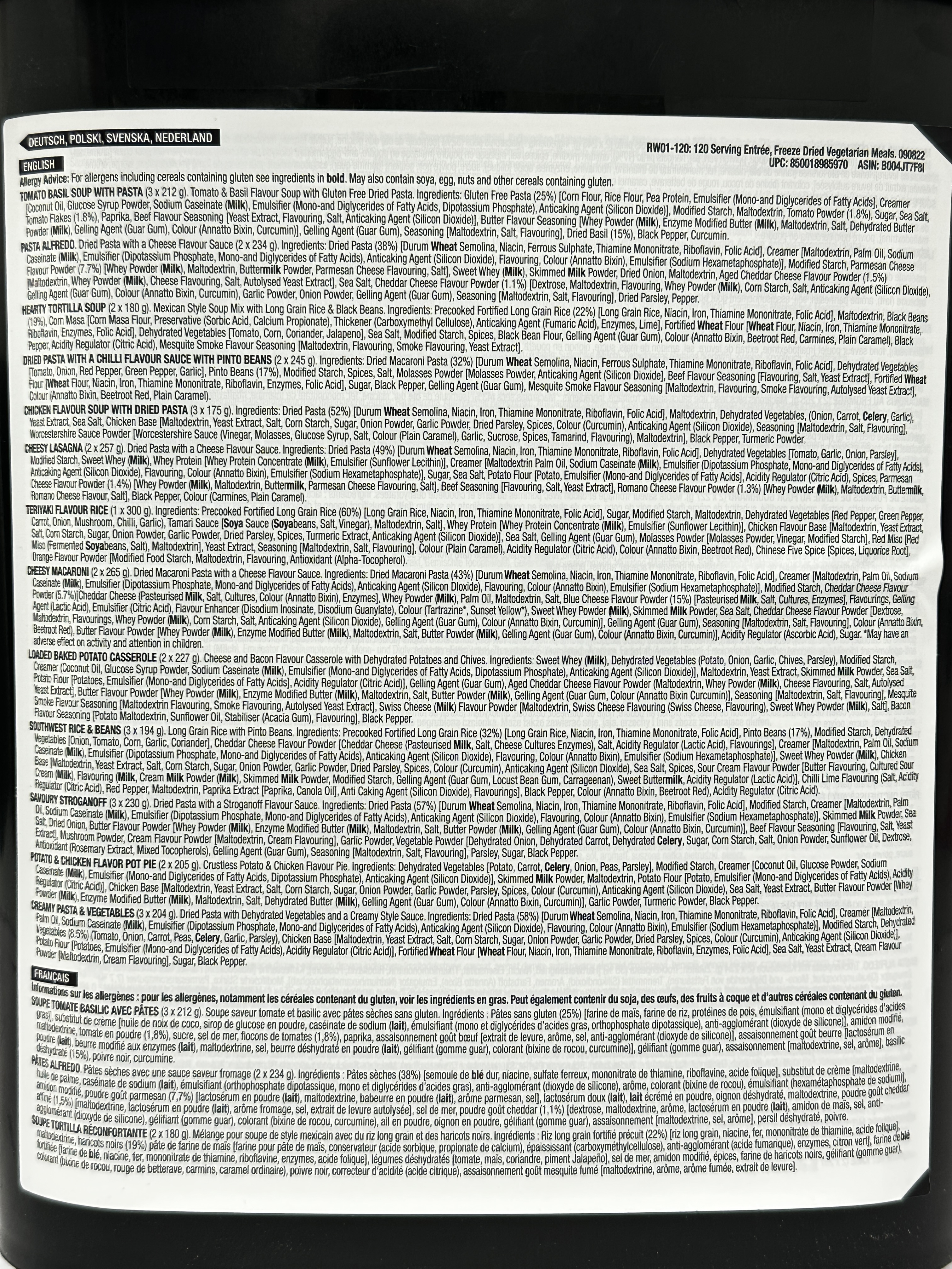 This 6.58kg bucket is suitable for emergency food storage, preparedness cupboards, camping supplies and long-term pantry planning. The assorted meal selection offers a practical mix of lunch and dinner style meals in a durable bucket format.