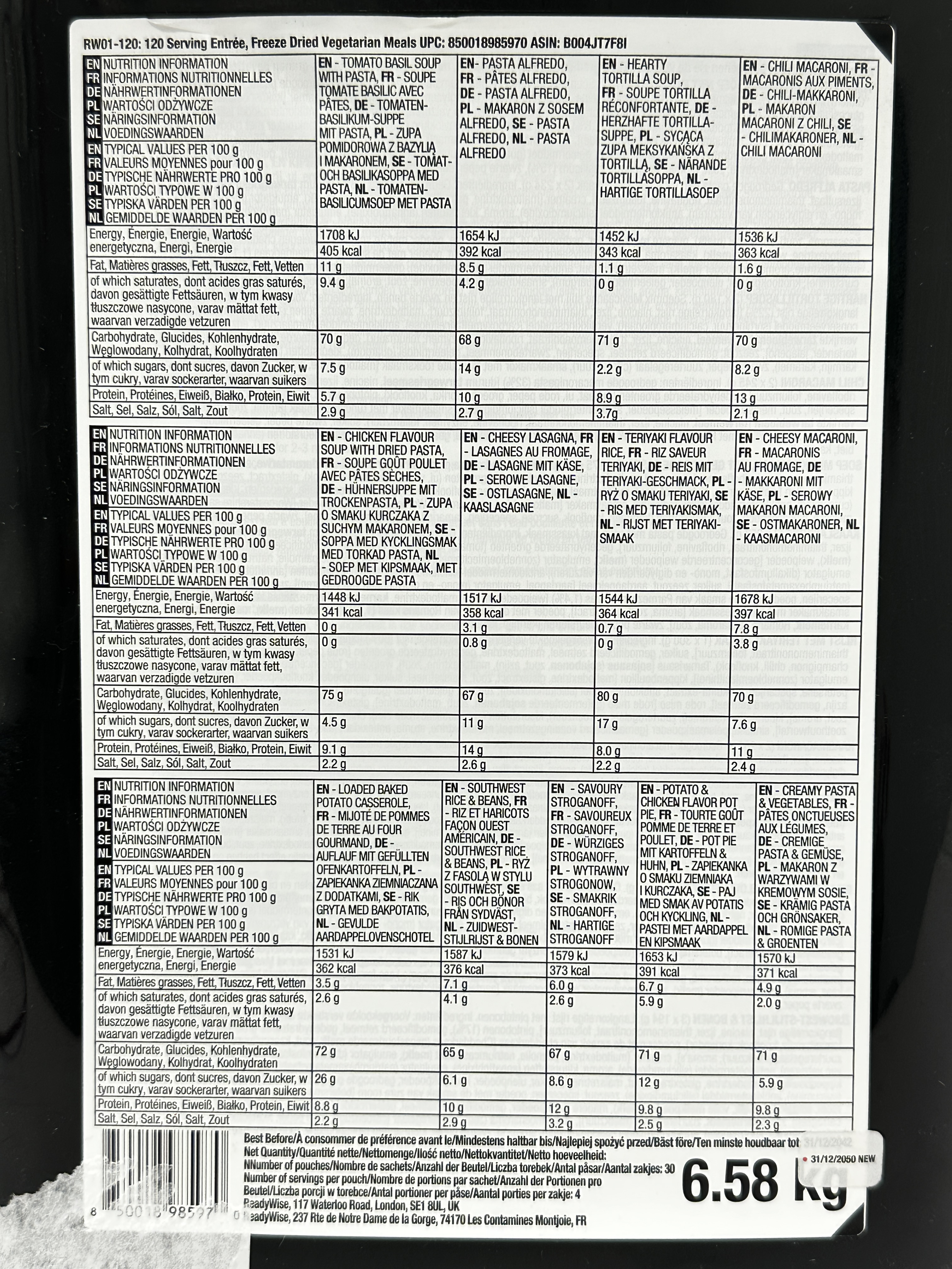 ReadyWise Emergency Food Bucket is a large freeze dried meal bucket with 120 lunch and dinner servings in 13 different recipes. Supplied in a grab-and-go bucket, this long shelf life food pack is designed for convenient storage and easy preparation by simply adding water.