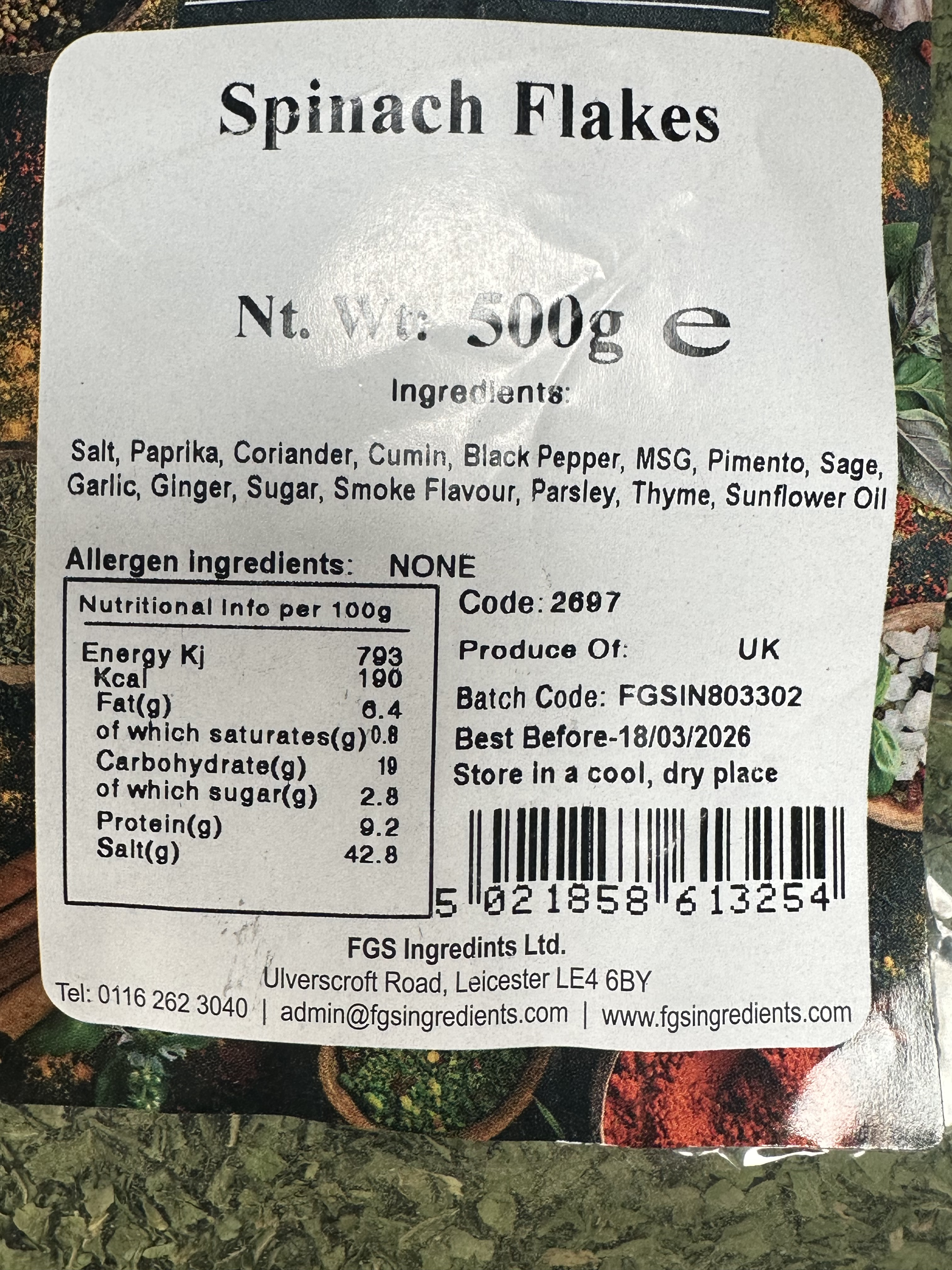 Spinach Flakes 500g