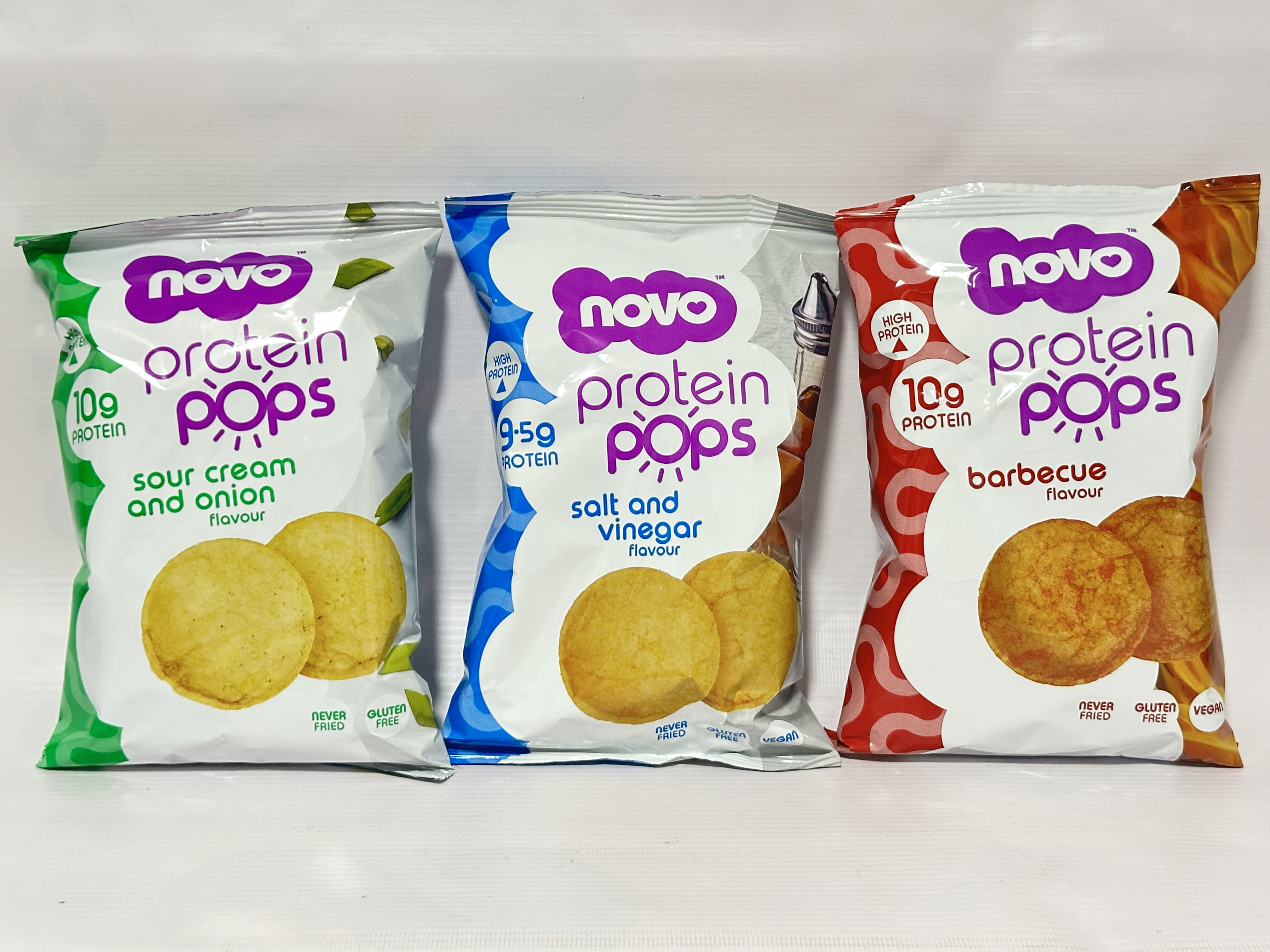 Novo Nutrition | Protein Pops | Healthy Savoury Snack with High Protein, Low Sugar and High Fibre | 36 x 45g | Salt Vinegar, Sour Cream & Onion, BBQ