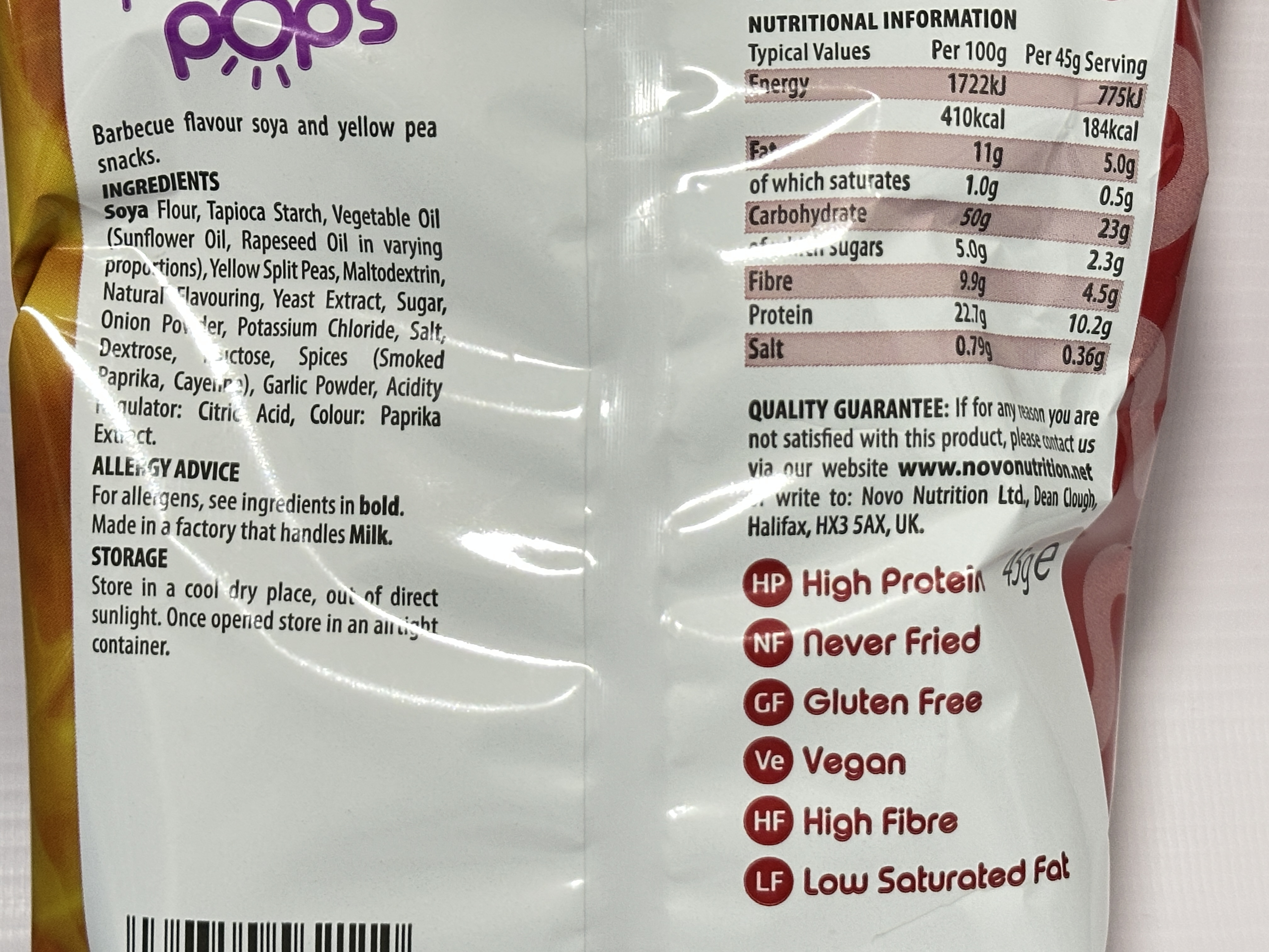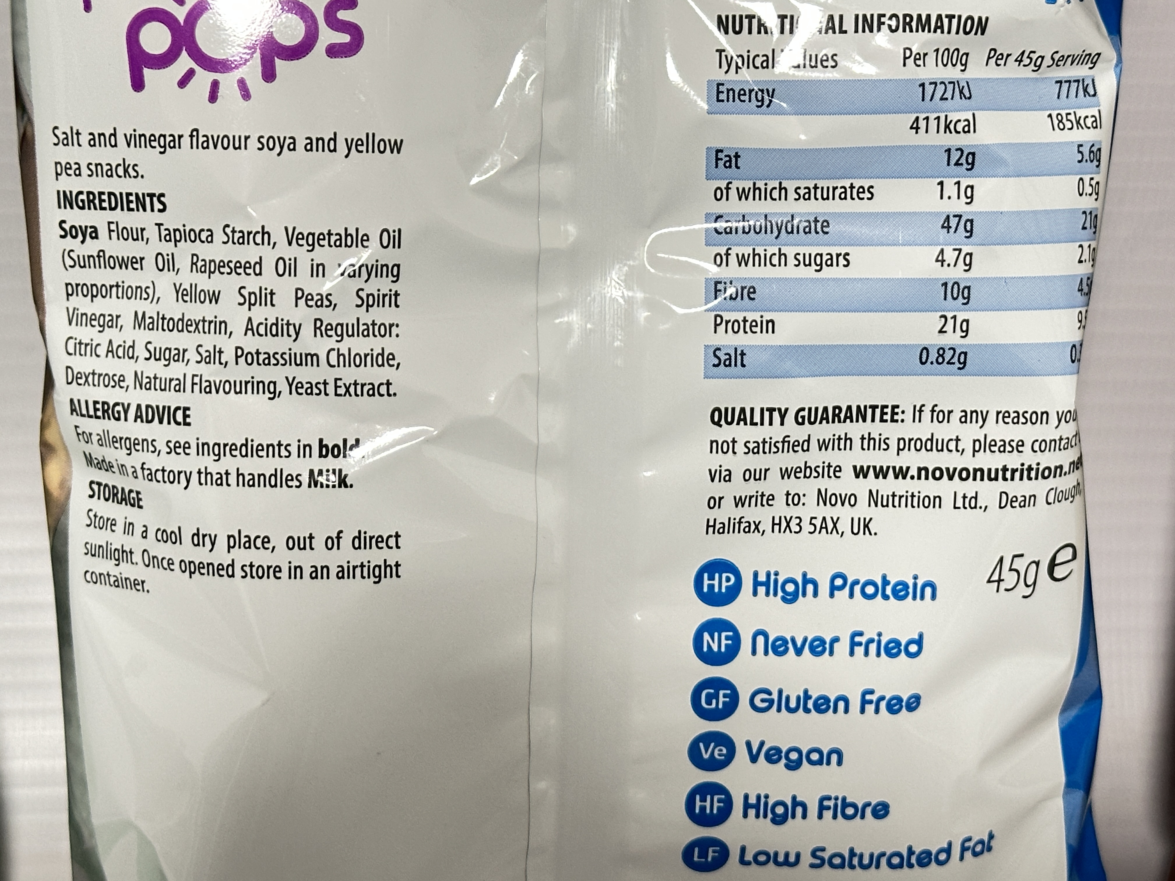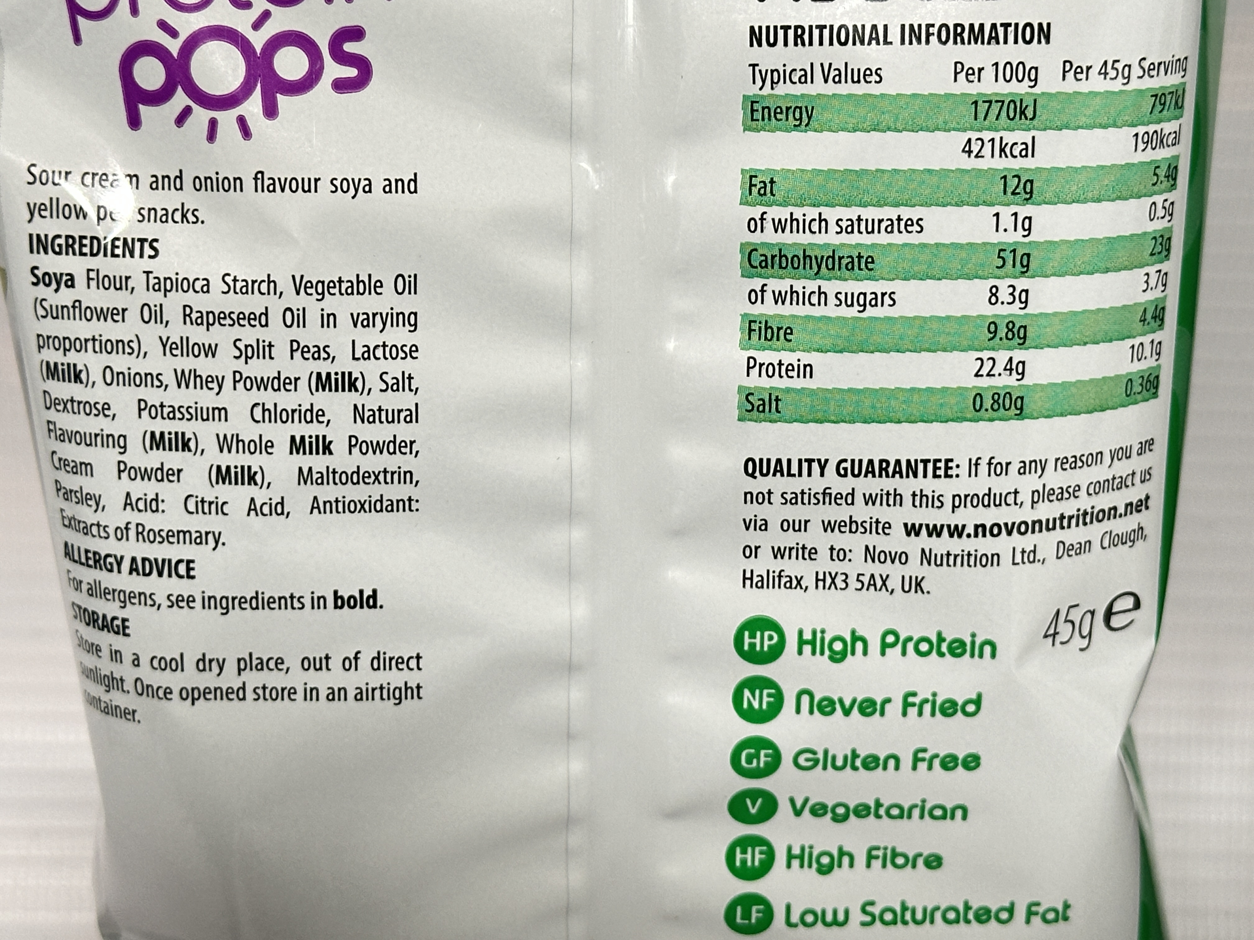 Snack smarter with Novo Nutrition Protein Pops — a delicious, high-protein alternative to crisps that’s never fried, gluten free, and packed with flavour. Made from soya and yellow peas, these crunchy bites deliver up to 10 g of protein per pack, helping to fuel your day while satisfying savoury cravings.